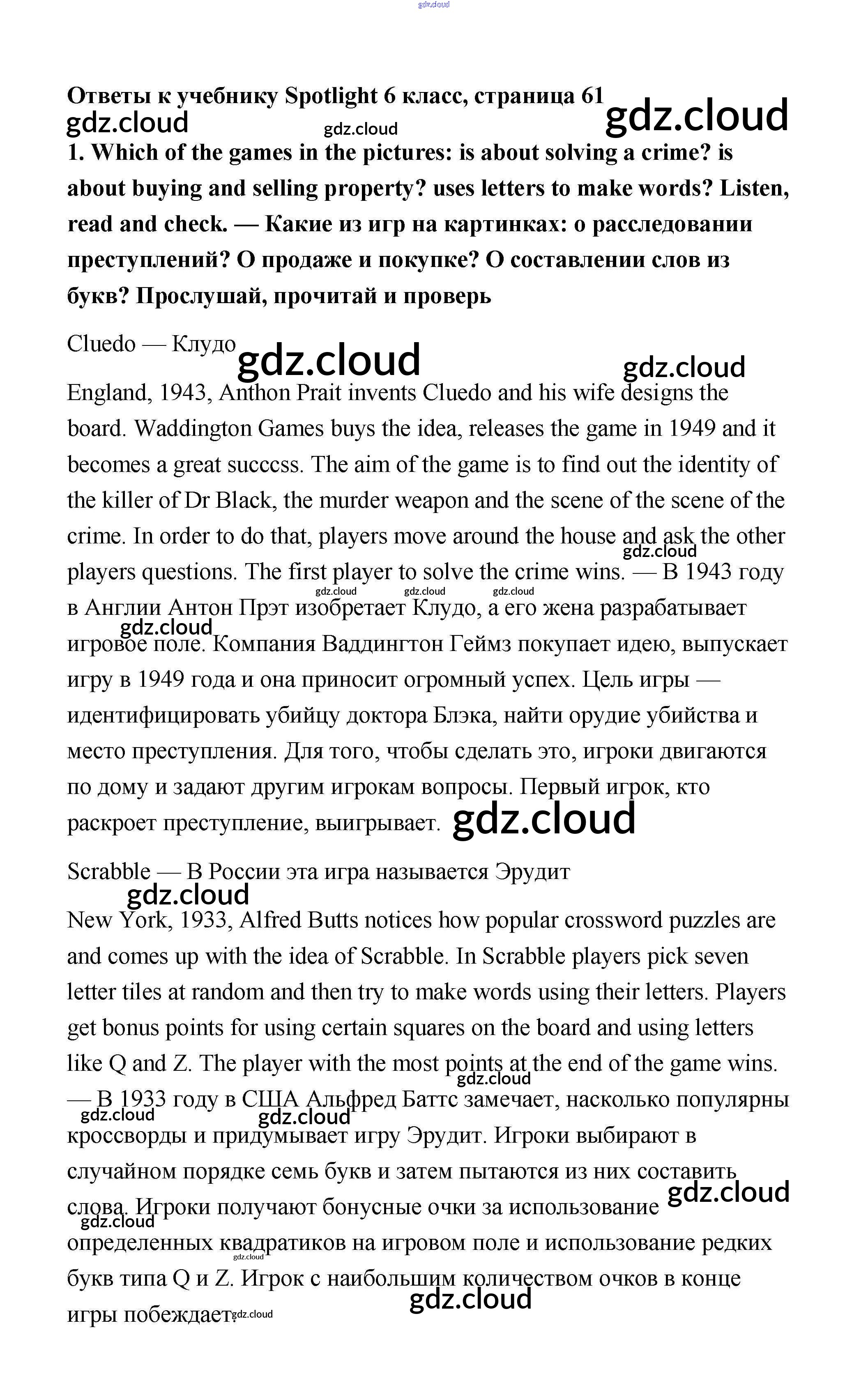 Ответ на задание 61 Учебник Английский язык за 6 (шестой) класс Ваулина, Дули, Эванс, Подоляко Spotlight 2017