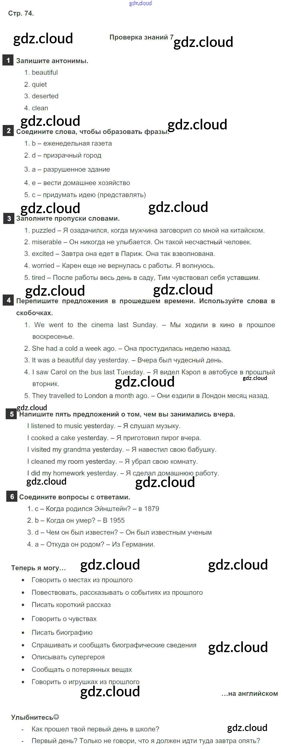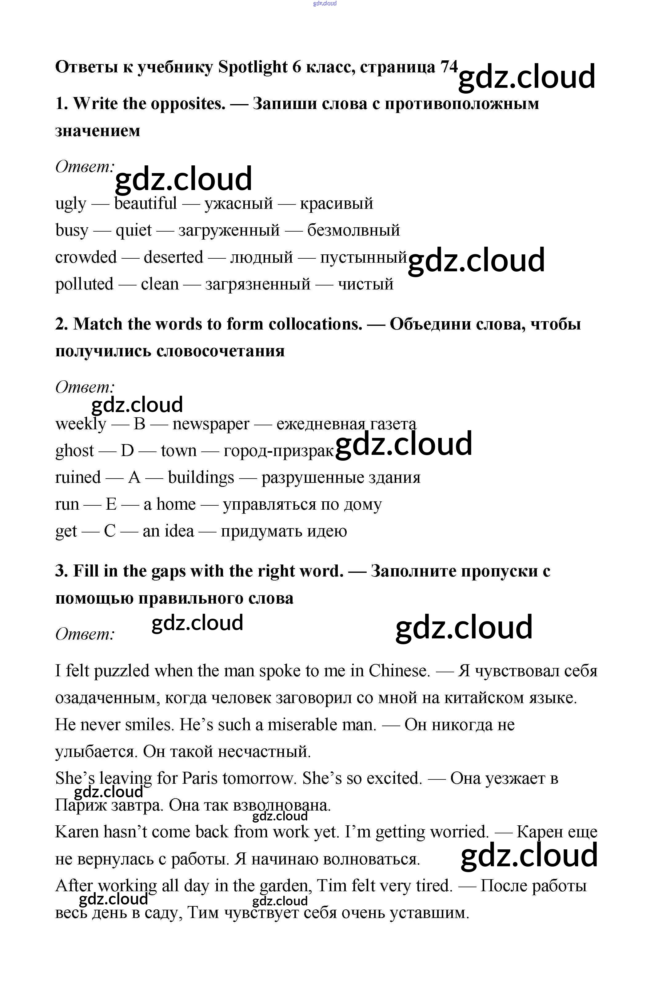 Ответ на задание 74 Учебник Английский язык  за 6 (шестой) класс Ваулина, Дули, Эванс, Подоляко Spotlight  2017