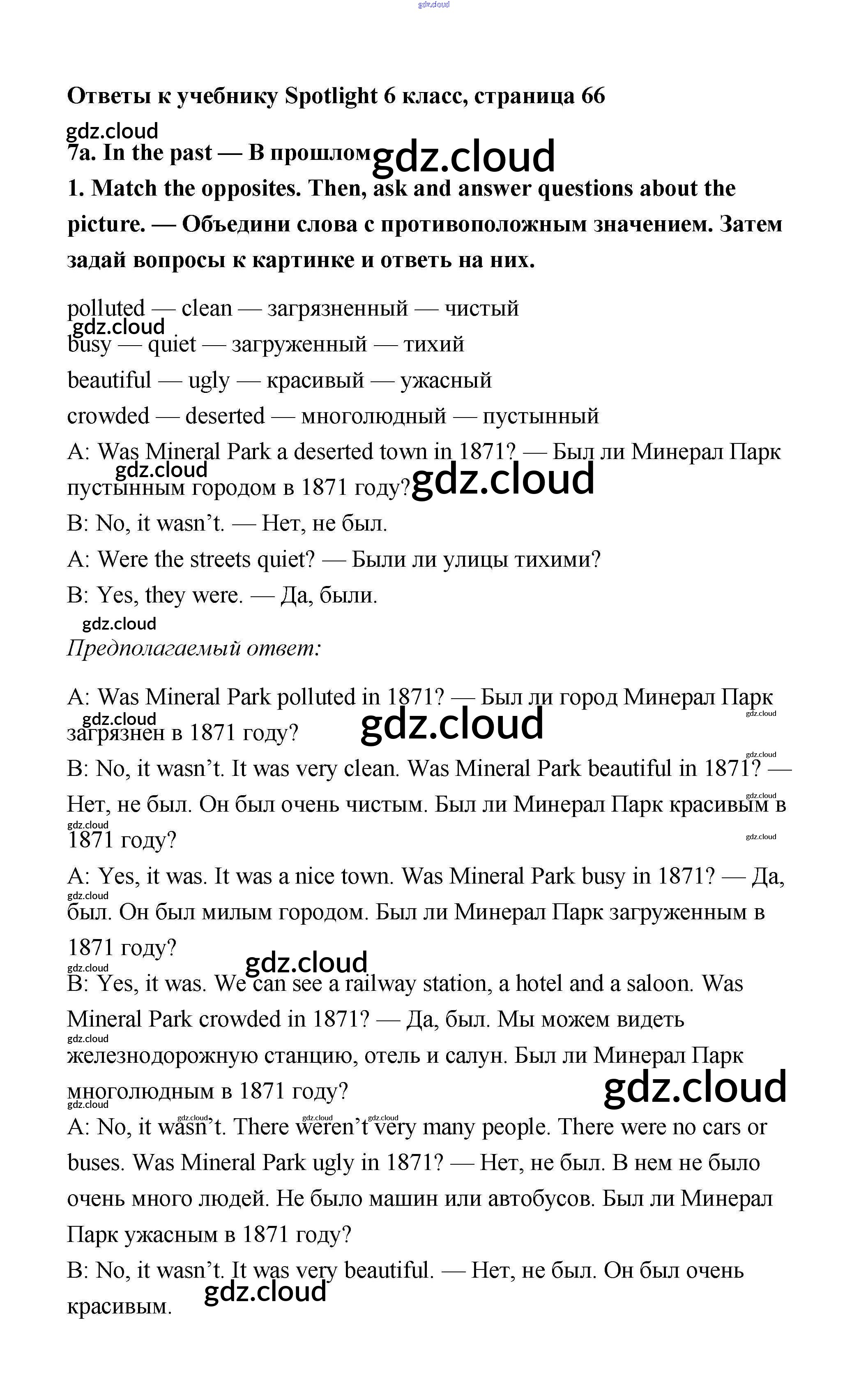 Ответ на задание 66 Учебник Английский язык  за 6 (шестой) класс Ваулина, Дули, Эванс, Подоляко Spotlight  2017