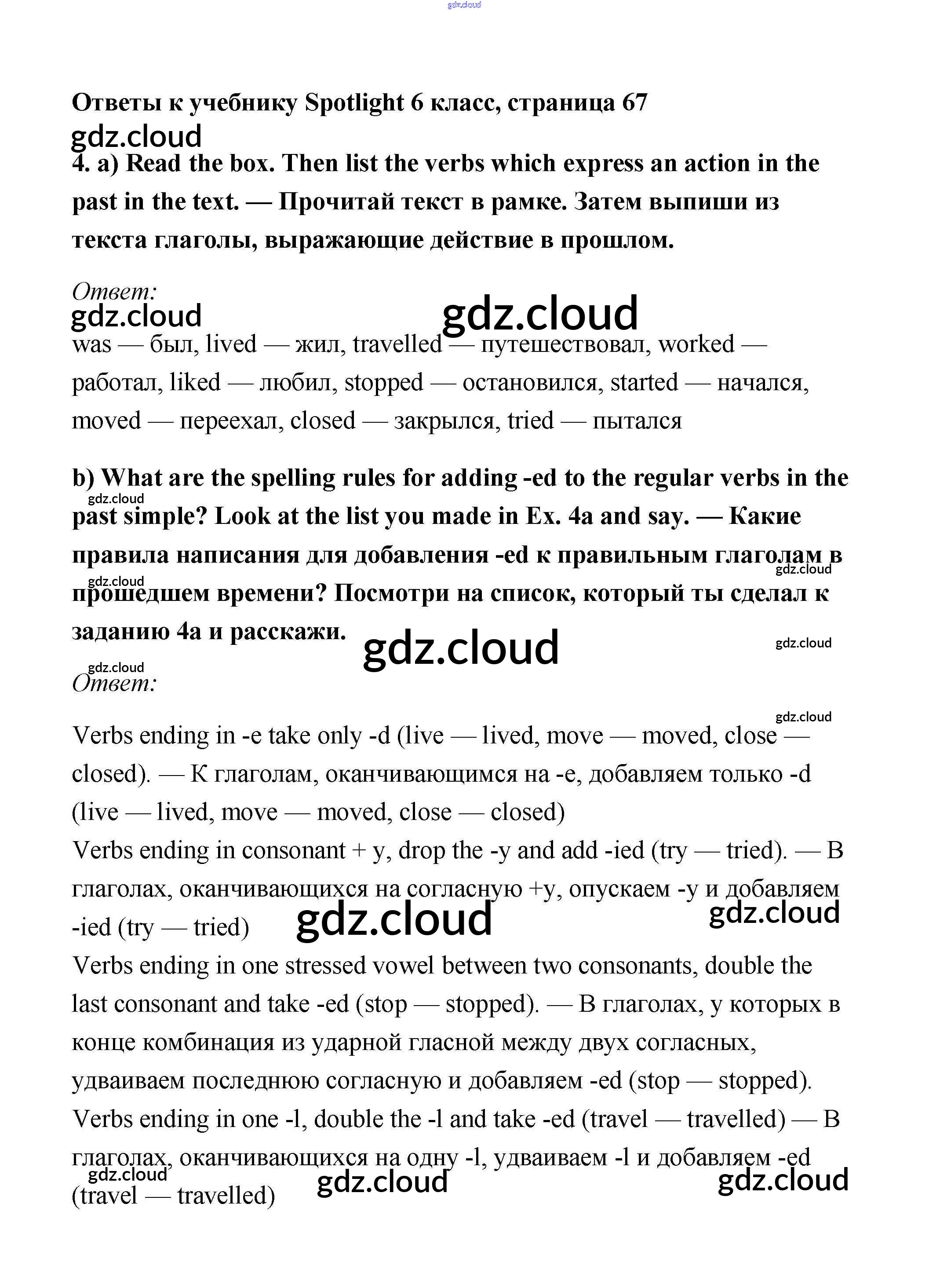 Ответ на задание 67 Учебник Английский язык  за 6 (шестой) класс Ваулина, Дули, Эванс, Подоляко Spotlight  2017