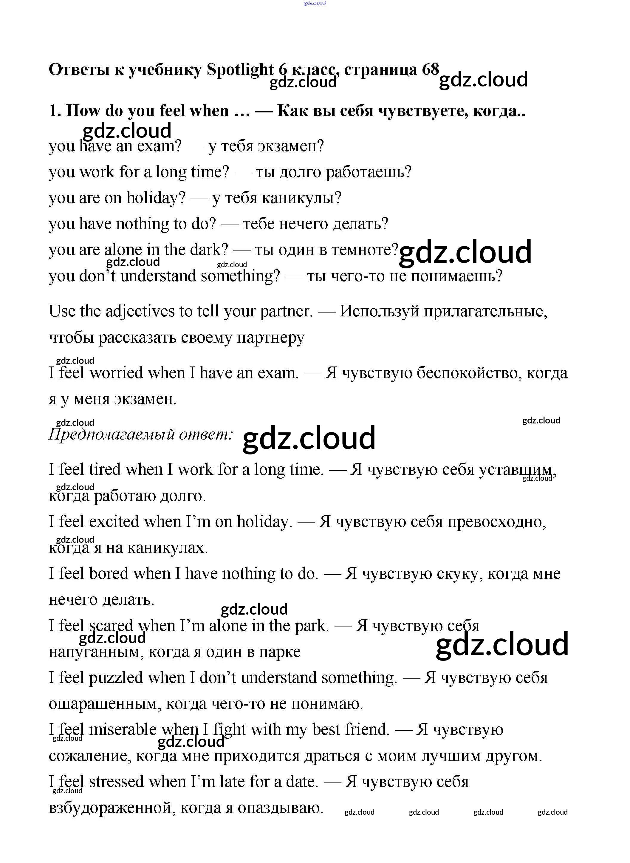 Ответ на задание 68 Учебник Английский язык  за 6 (шестой) класс Ваулина, Дули, Эванс, Подоляко Spotlight  2017