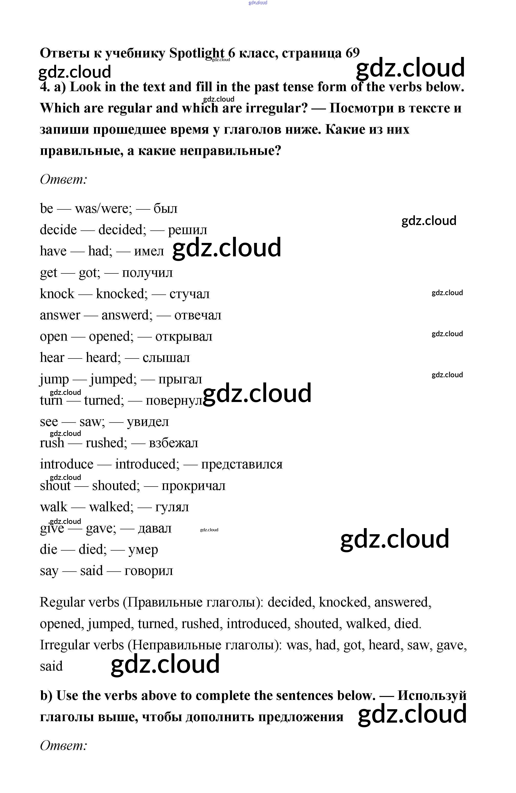 Ответ на задание 69 Учебник Английский язык  за 6 (шестой) класс Ваулина, Дули, Эванс, Подоляко Spotlight  2017
