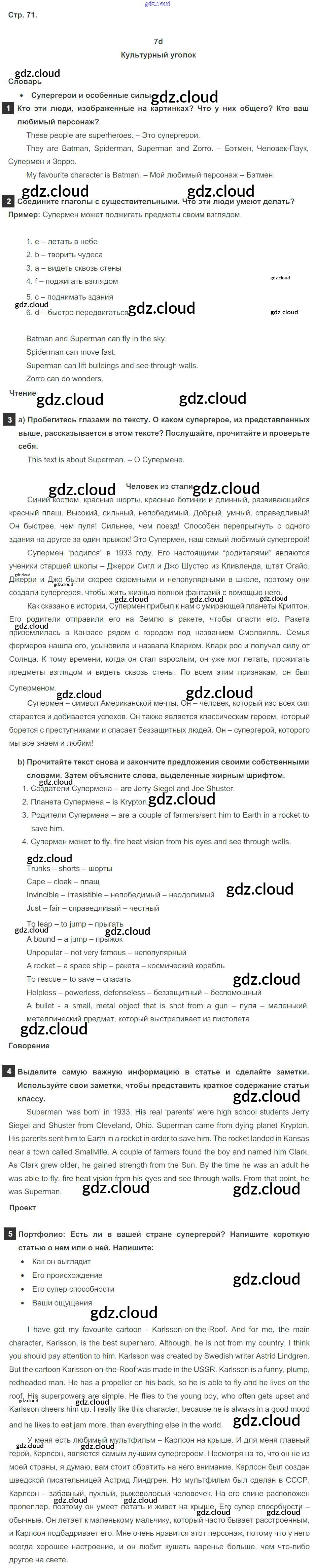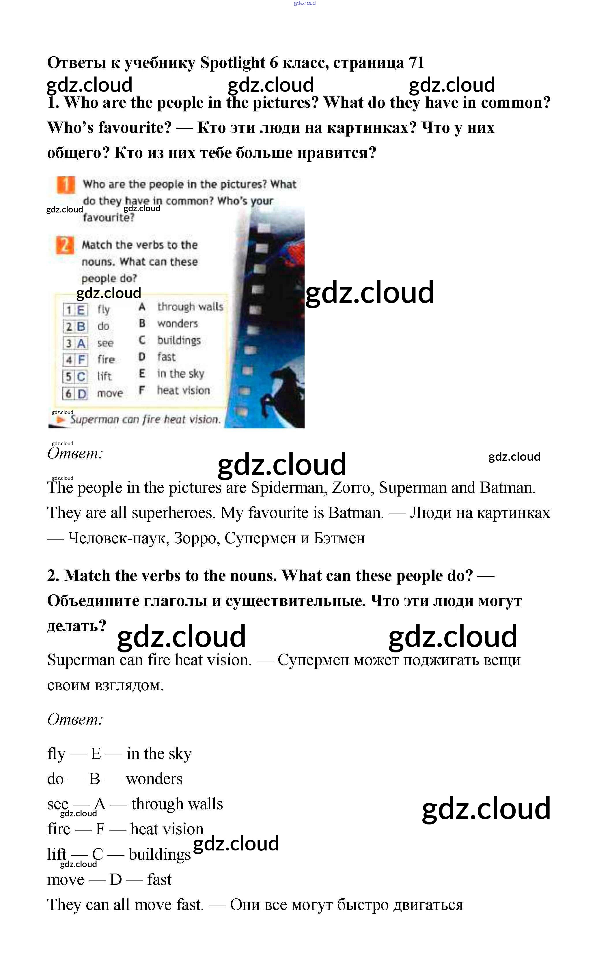 Ответ на задание 71 Учебник Английский язык  за 6 (шестой) класс Ваулина, Дули, Эванс, Подоляко Spotlight  2017