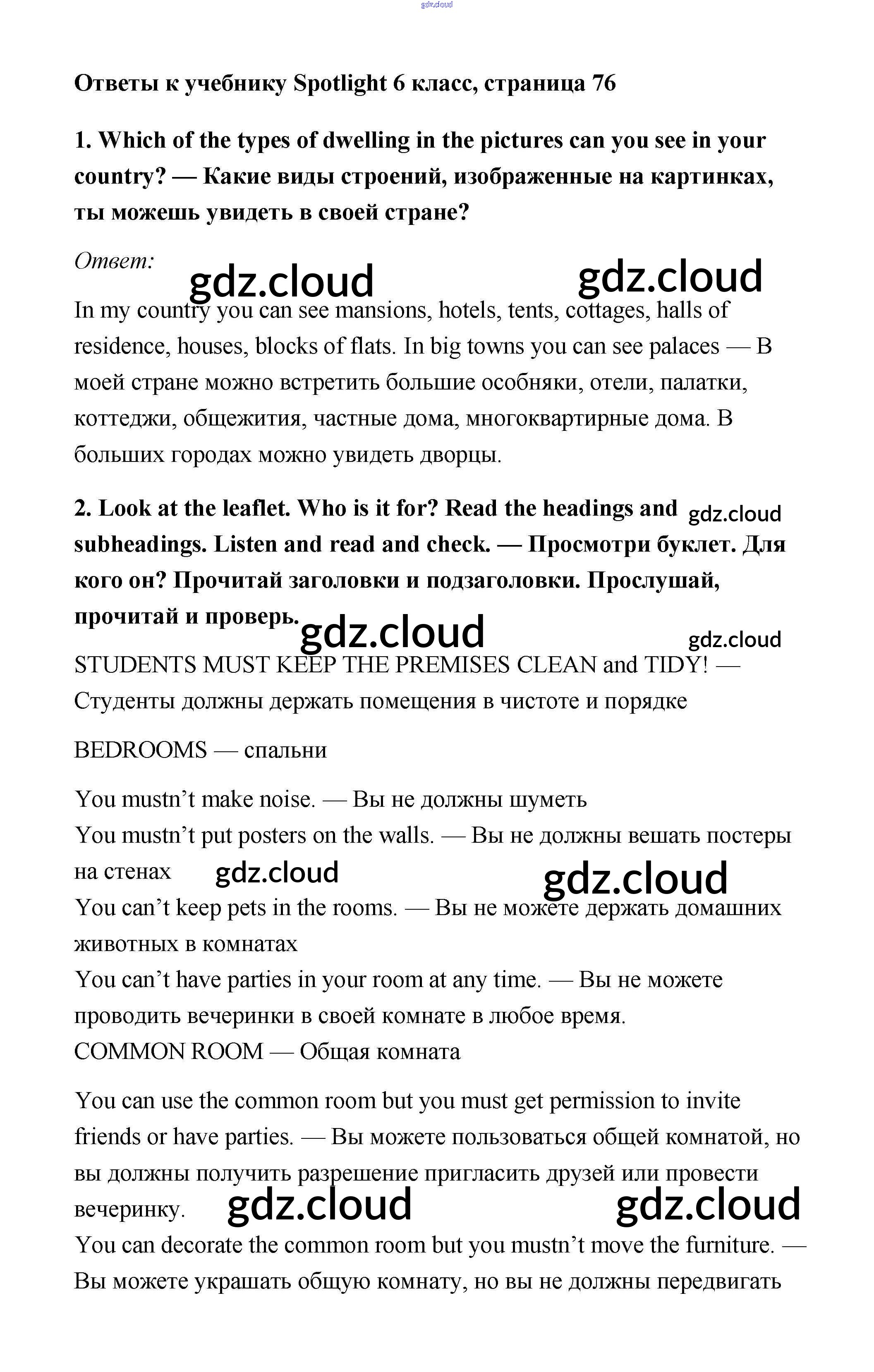 Ответ на задание 76 Учебник Английский язык  за 6 (шестой) класс Ваулина, Дули, Эванс, Подоляко Spotlight  2017