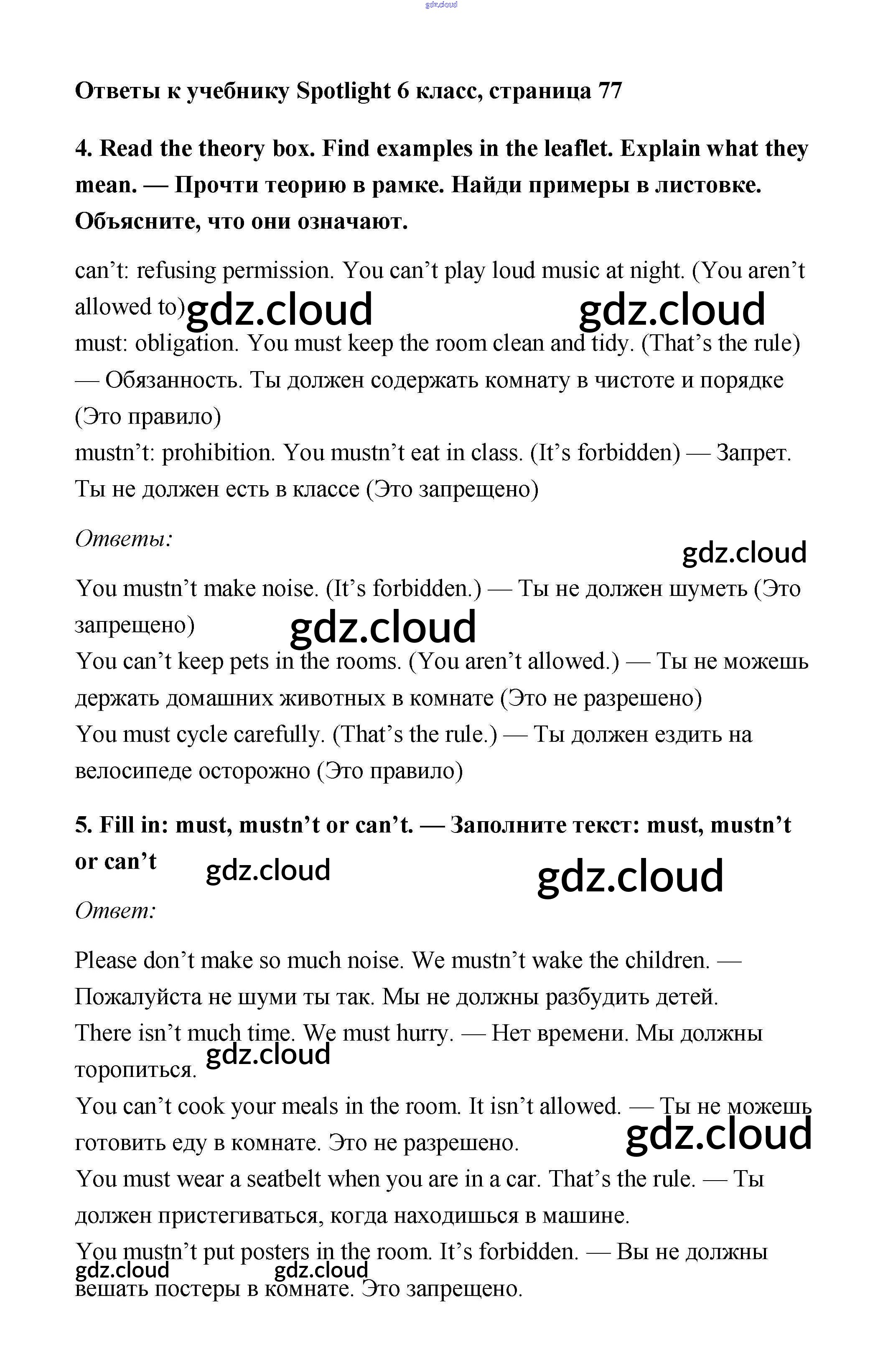 Ответ на задание 77 Учебник Английский язык  за 6 (шестой) класс Ваулина, Дули, Эванс, Подоляко Spotlight  2017