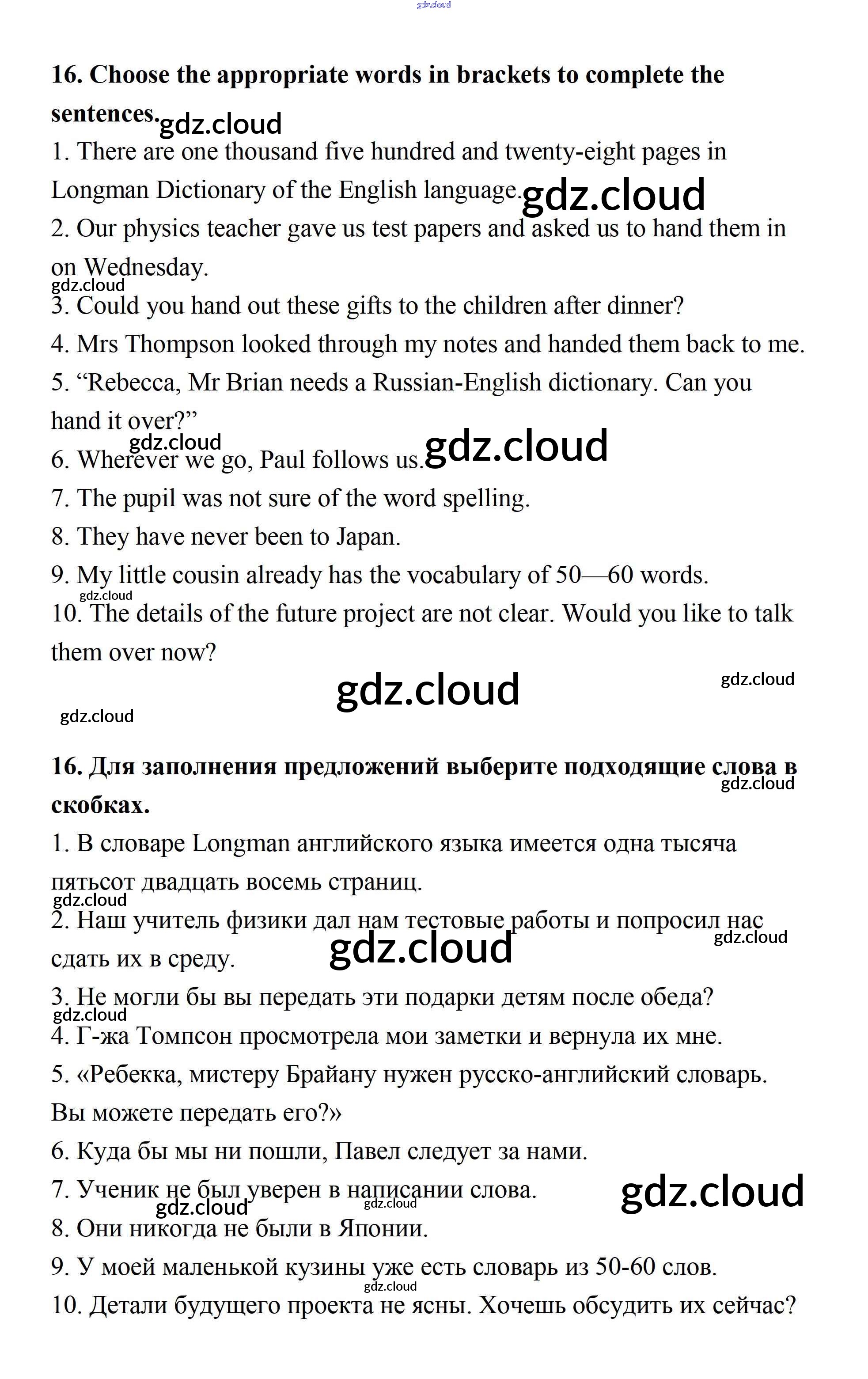 Ответ на задание 16 Рабочая тетрадь Английский язык за 7 (седьмой) класс Афанасьева, Михеева, Баранова Rainbow 2019