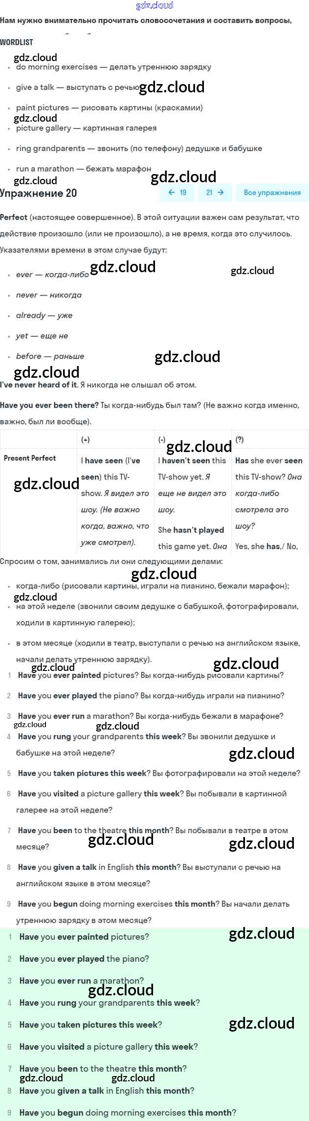 Ответ на задание 20 Рабочая тетрадь Английский язык  за 7 (седьмой) класс Афанасьева, Михеева, Баранова Rainbow  2019