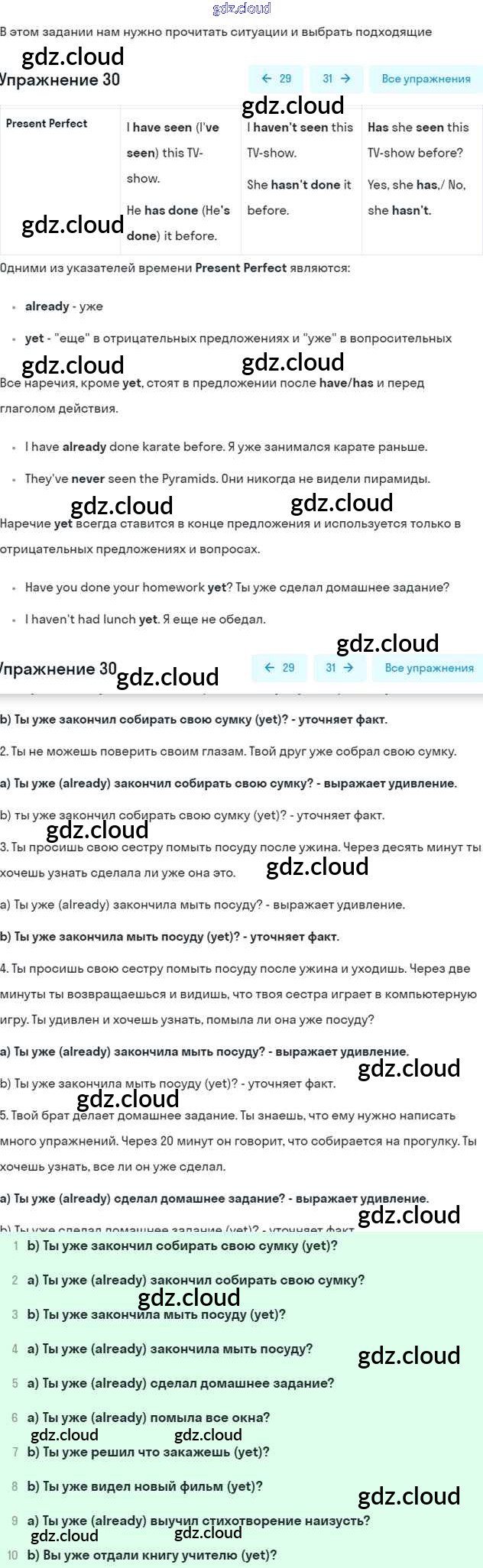 Ответ на задание 30 Рабочая тетрадь Английский язык  за 7 (седьмой) класс Афанасьева, Михеева, Баранова Rainbow  2019