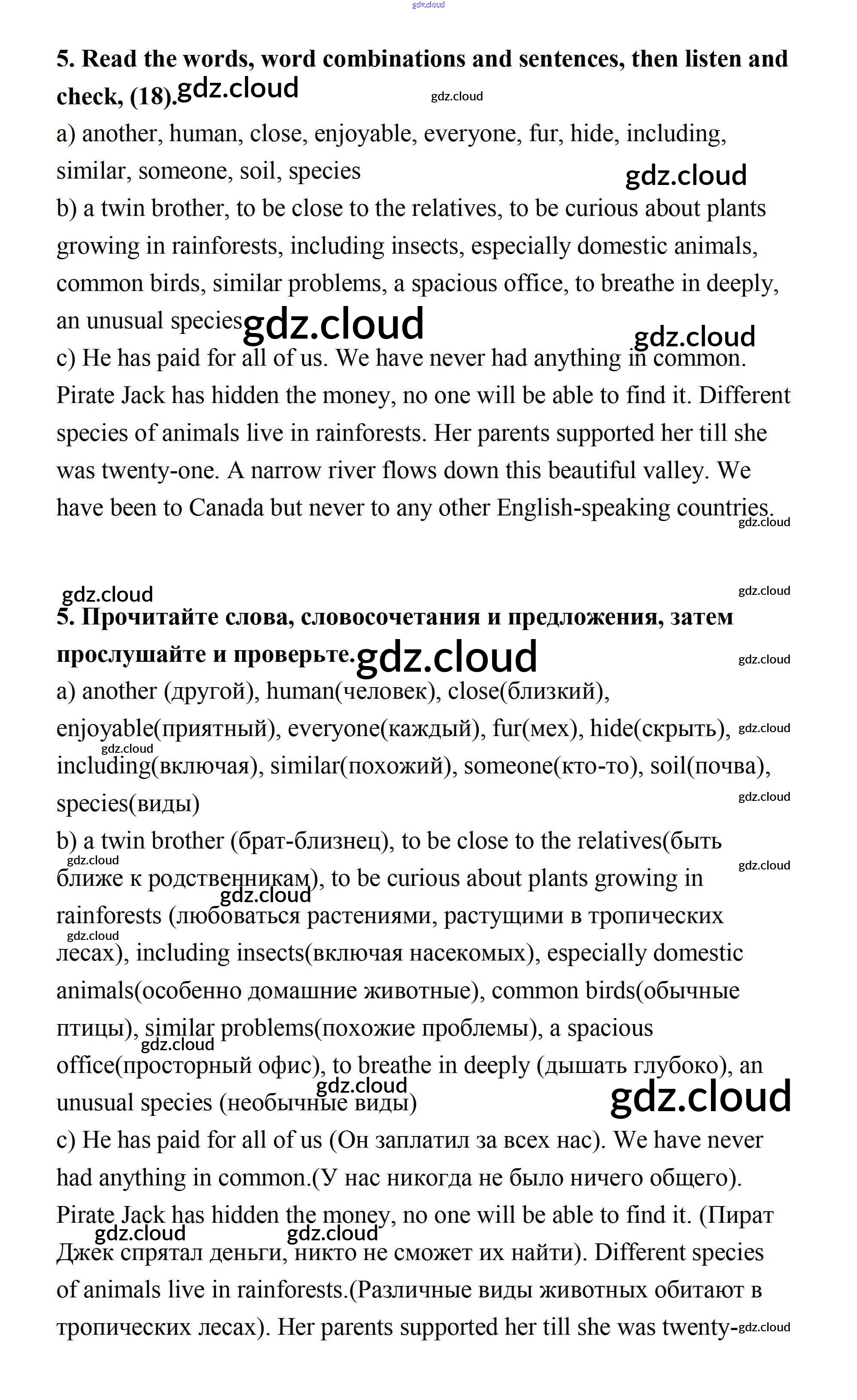 Ответ на задание 5 Рабочая тетрадь Английский язык  за 7 (седьмой) класс Афанасьева, Михеева, Баранова Rainbow  2019