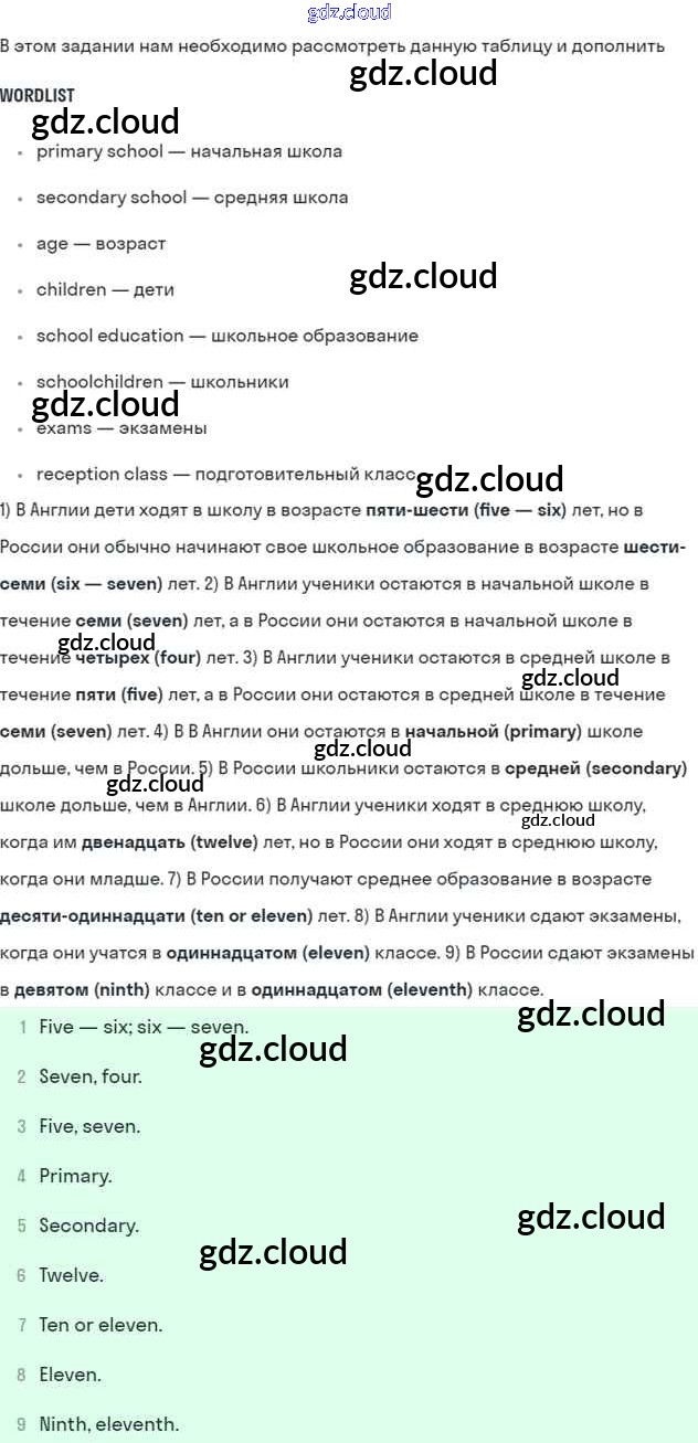 Step 7 Ответы к UNIT 1. SCHOOLS AND SCHOOLING. по Английскому языку 7 класс Учебник Афанасьева Rainbow Часть 1, 2 Дрофа