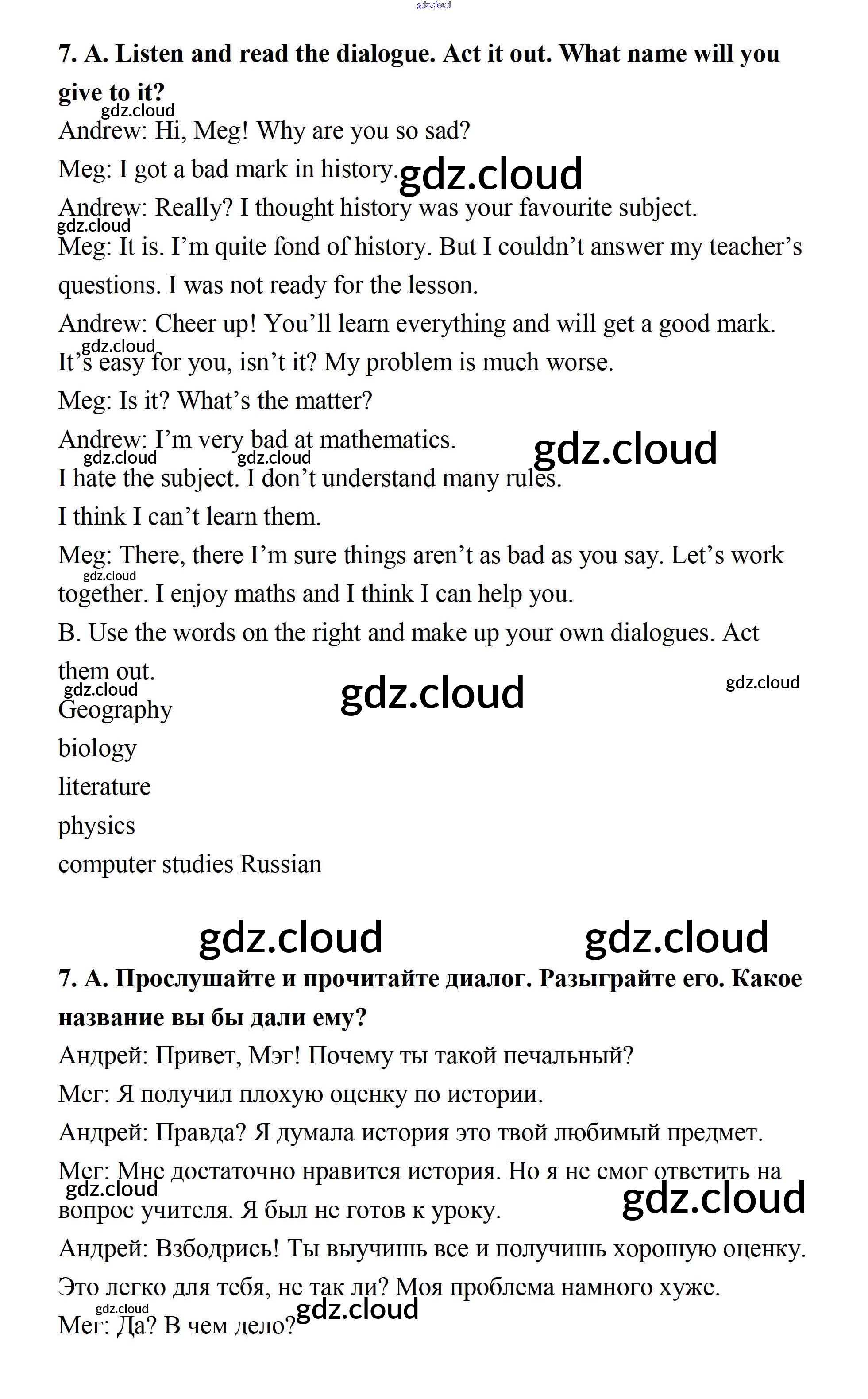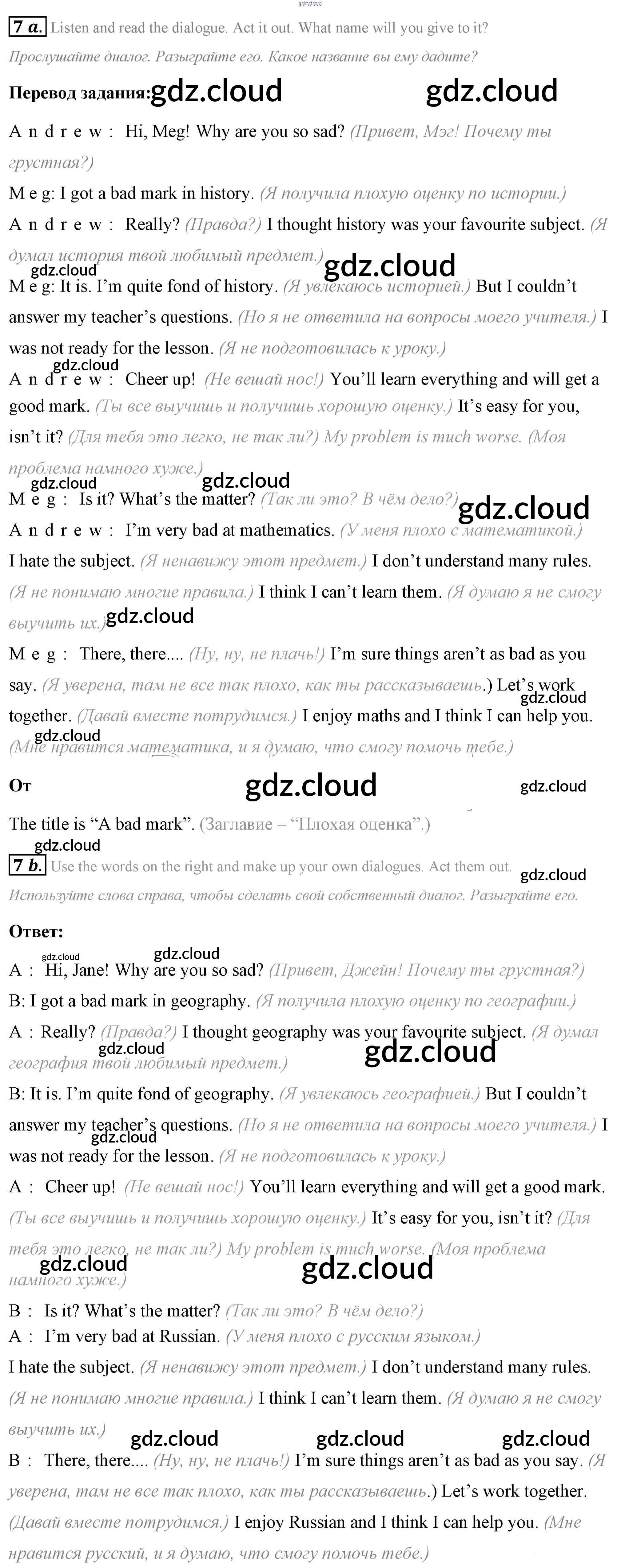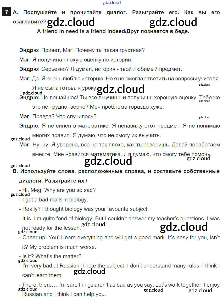 Step 7 Ответы к UNIT 1. SCHOOLS AND SCHOOLING. по Английскому языку 7 класс Учебник Афанасьева Rainbow Часть 1, 2 Дрофа