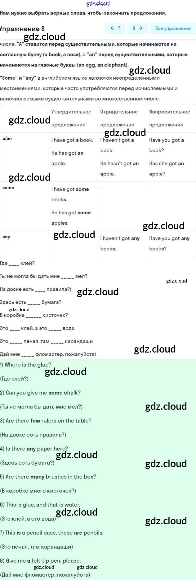 Ответ на задание 8 Учебник Английский язык за 7 (седьмой) класс Афанасьева, Михеева, Баранова Rainbow 2019 Часть 1, 2