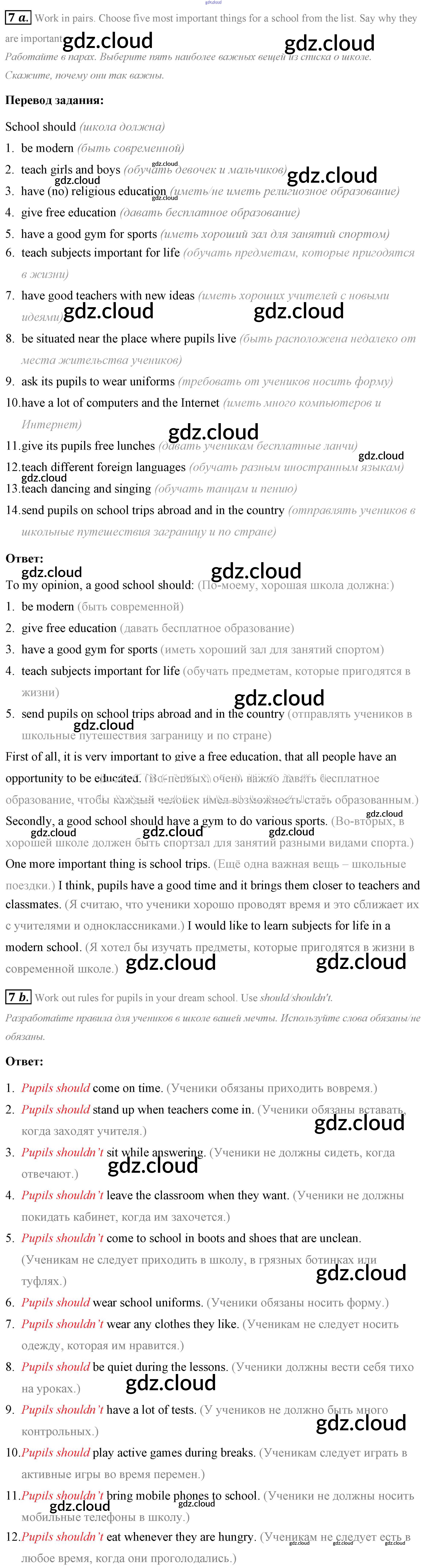 Step 8 Ответы к UNIT 1. SCHOOLS AND SCHOOLING. по Английскому языку 7 класс Учебник Афанасьева Rainbow Часть 1, 2 Дрофа