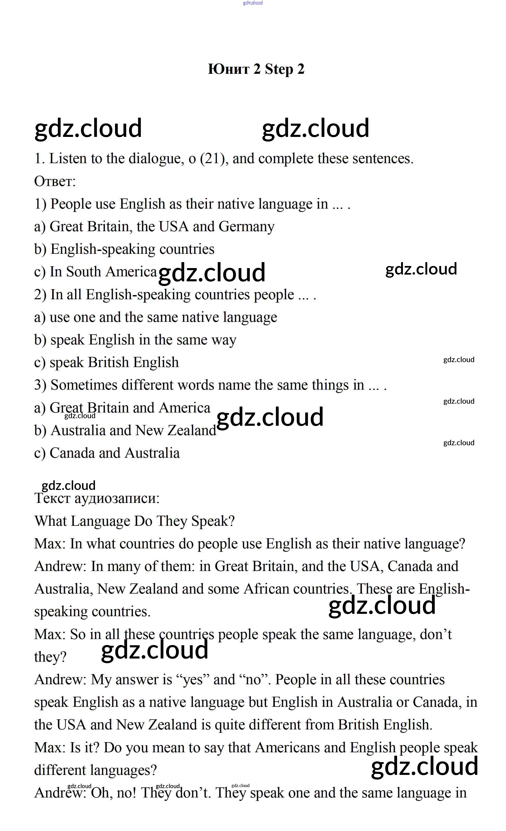 Step 2 Ответы к UNIT 2. THE LANGUAGE OF THE WORLD. по Английскому языку 7 класс Учебник Афанасьева Rainbow Часть 1, 2 Дрофа