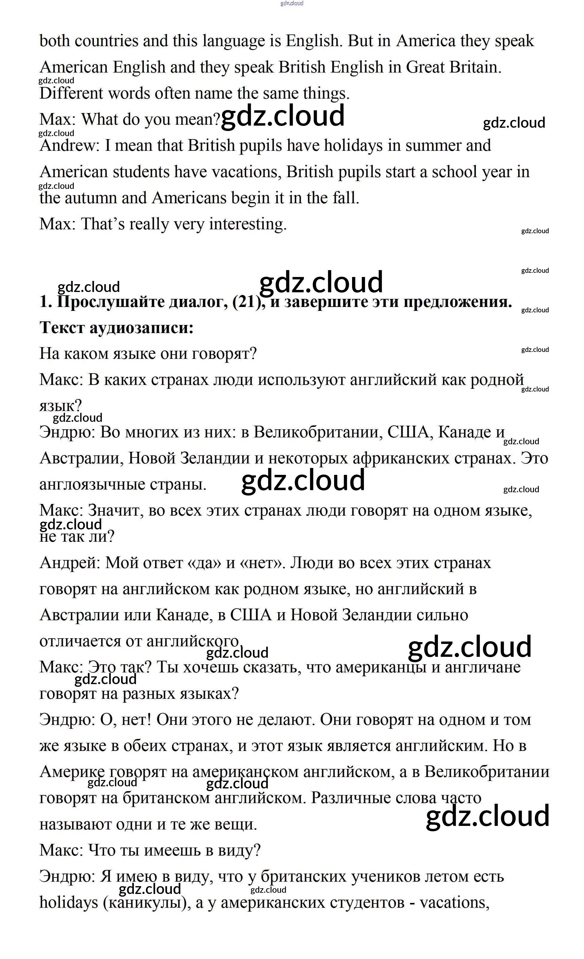 Ответ на задание 1 Учебник Английский язык за 7 (седьмой) класс Афанасьева, Михеева, Баранова Rainbow 2019 Часть 1, 2