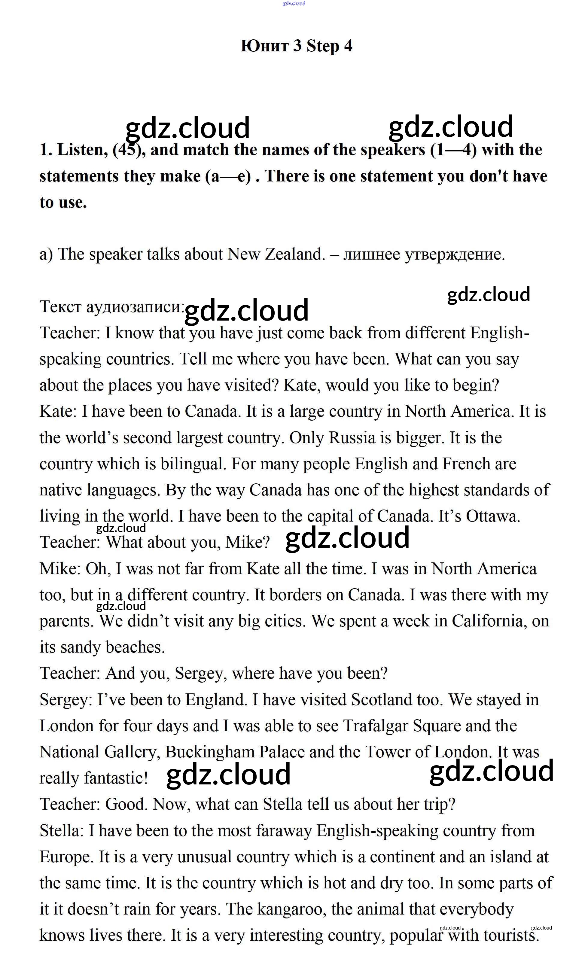 Step 4 Ответы к UNIT 3. SOME FACTS ABOUT THE ENGLISH-SPEAKING WORLD. по Английскому языку 7 класс Учебник Афанасьева Rainbow Часть 1, 2 Дрофа