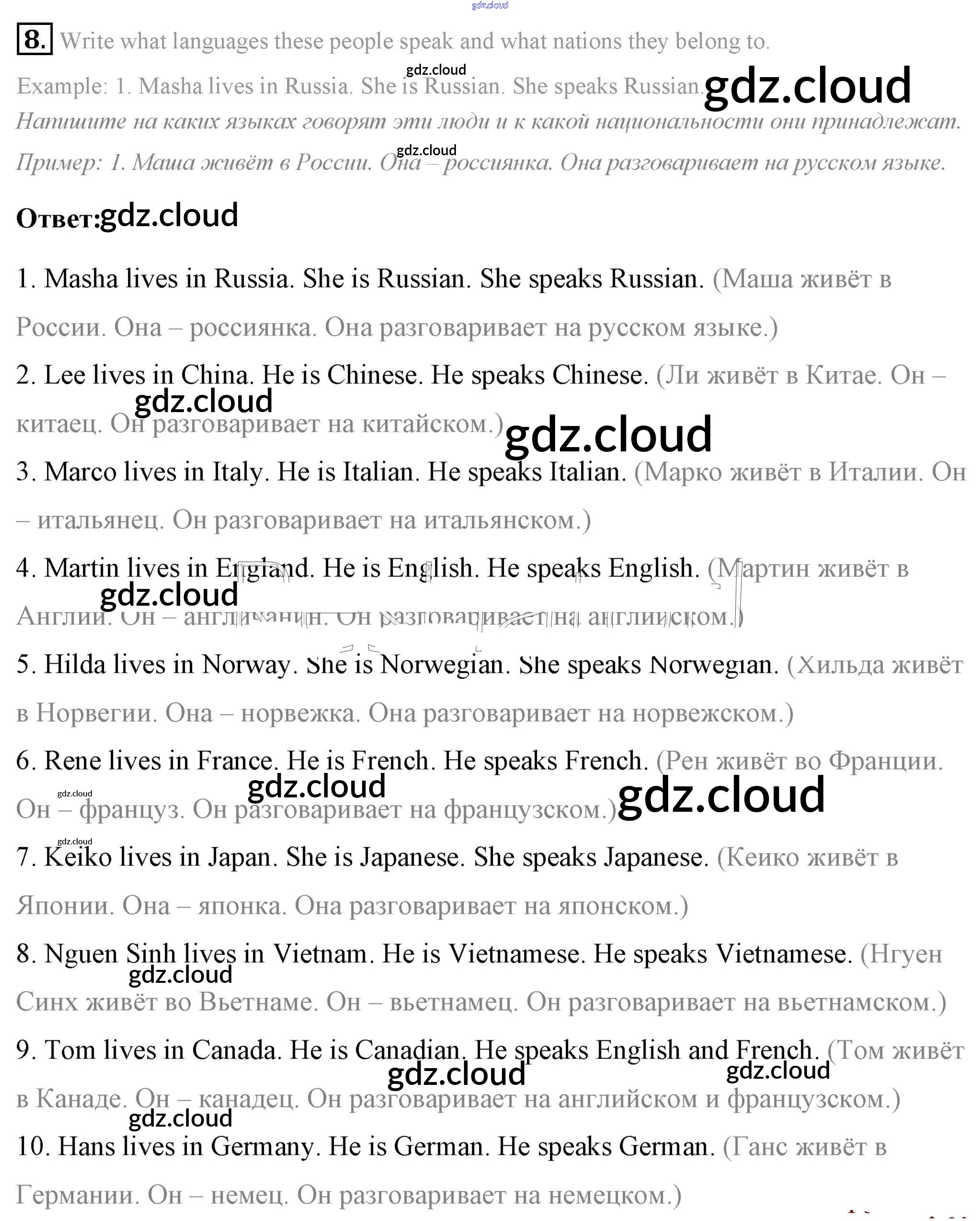 Ответ на задание 8 Учебник Английский язык за 7 (седьмой) класс Афанасьева, Михеева, Баранова Rainbow 2019 Часть 1, 2
