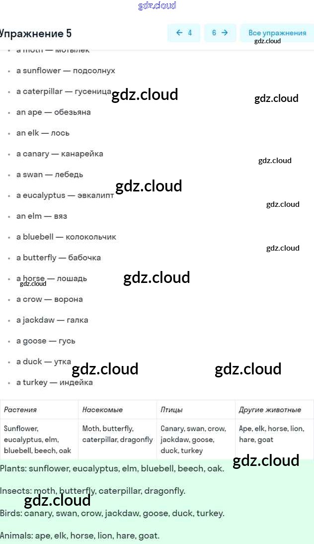 Step 9 Consolidation Class: Ответы к UNIT 4. LIVING THINGS AROUND US. по Английскому языку 7 класс Учебник Афанасьева Rainbow Часть 1, 2 Дрофа