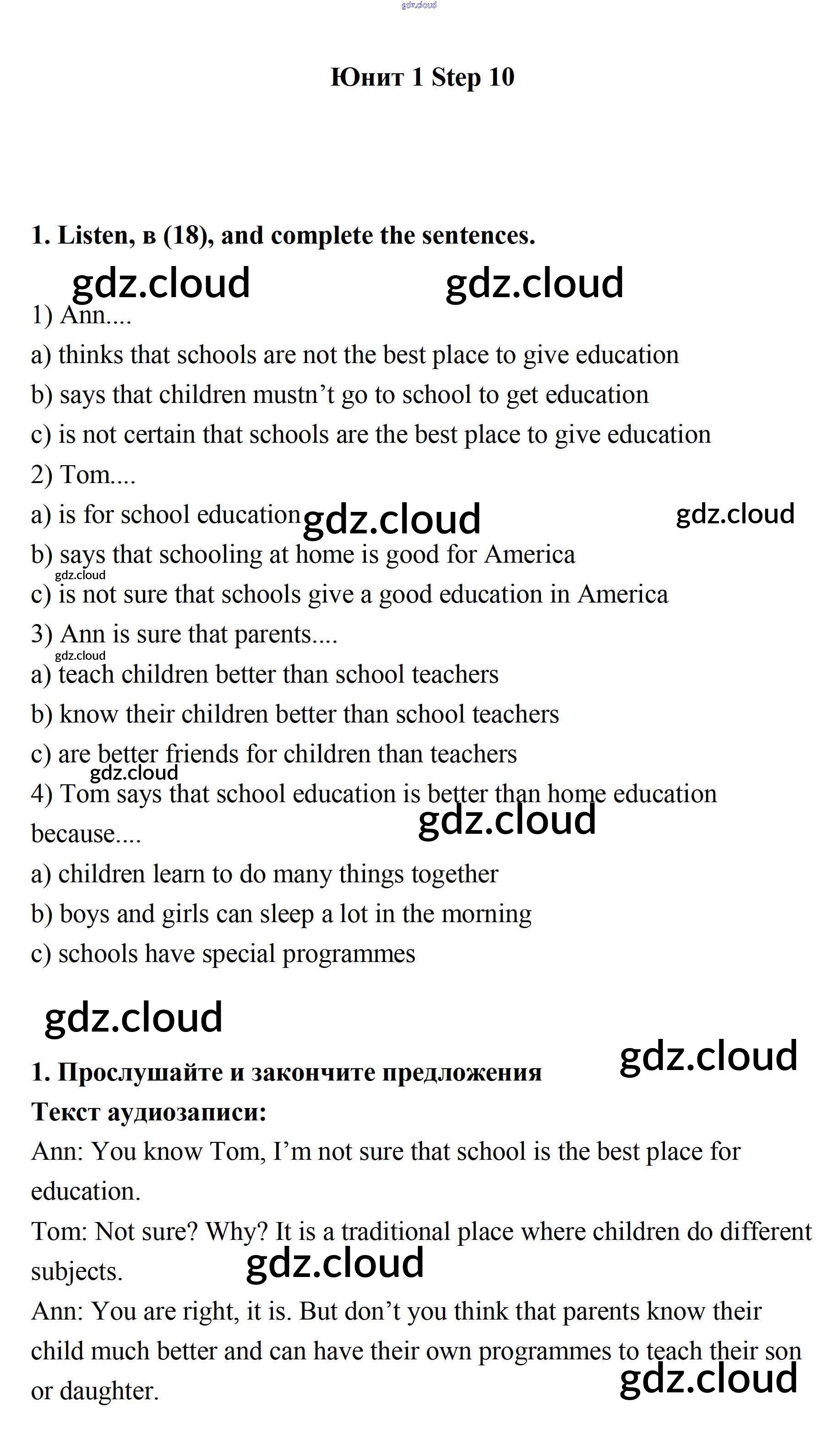Step 10 Test Yourself: Ответы к UNIT 1. SCHOOLS AND SCHOOLING. по Английскому языку 7 класс Учебник Афанасьева Rainbow Часть 1, 2 Дрофа