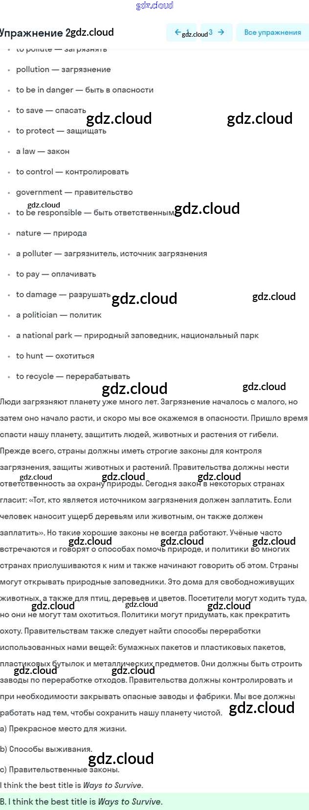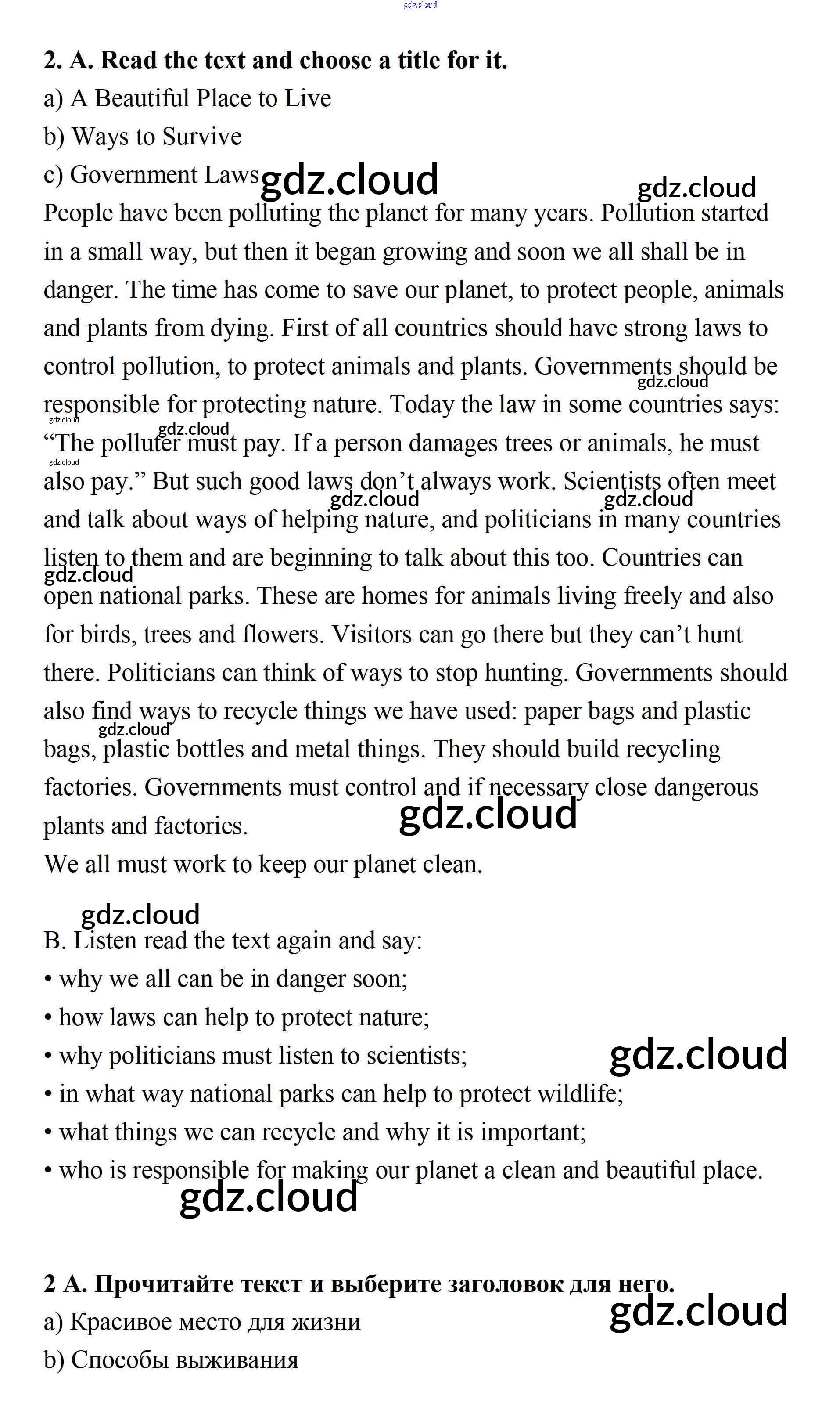 Step 9 Consolidation Class: Ответы к UNIT 5. THE ABC OF ECOLOGY. по Английскому языку 7 класс Учебник Афанасьева Rainbow Часть 1, 2 Дрофа