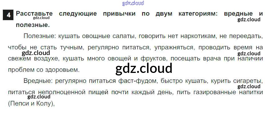 Step 1 Ответы к UNIT 6. LIVING HEALTHY. по Английскому языку 7 класс Учебник Афанасьева Rainbow Часть 1, 2 Дрофа