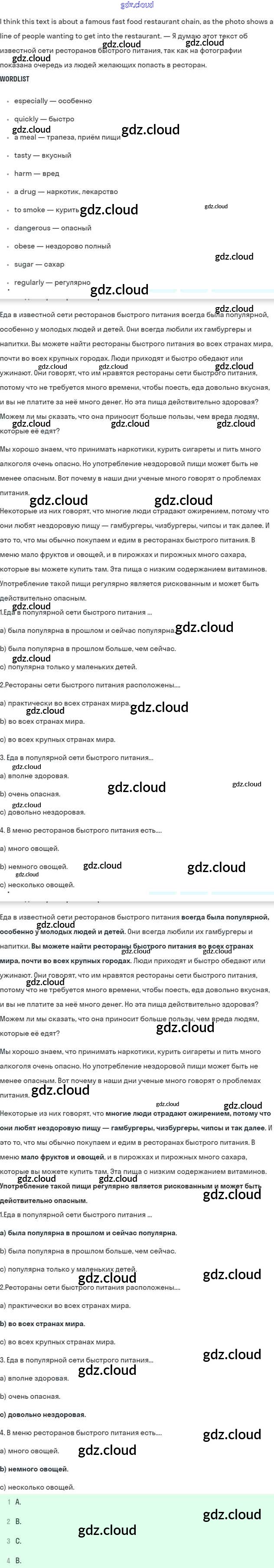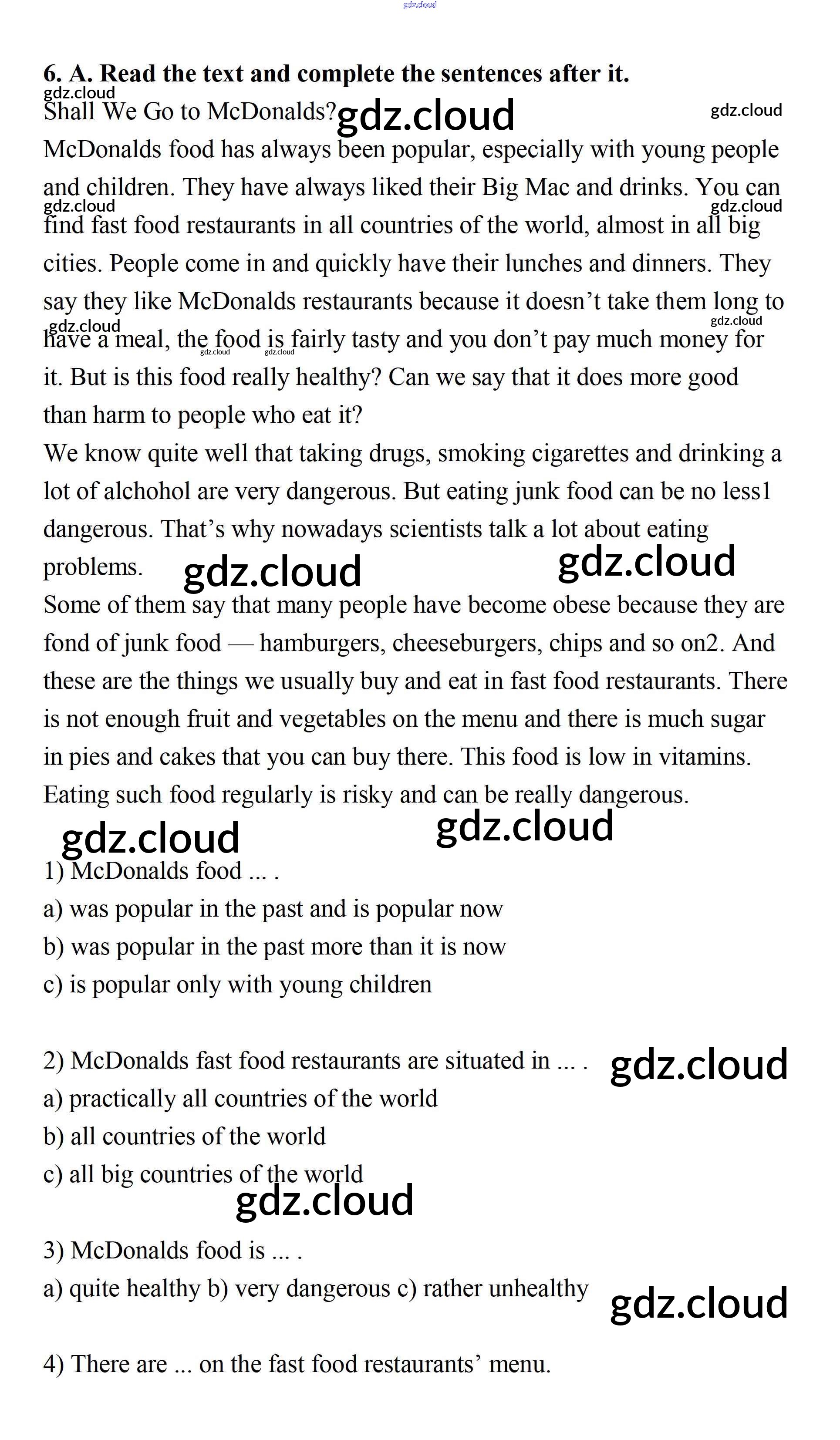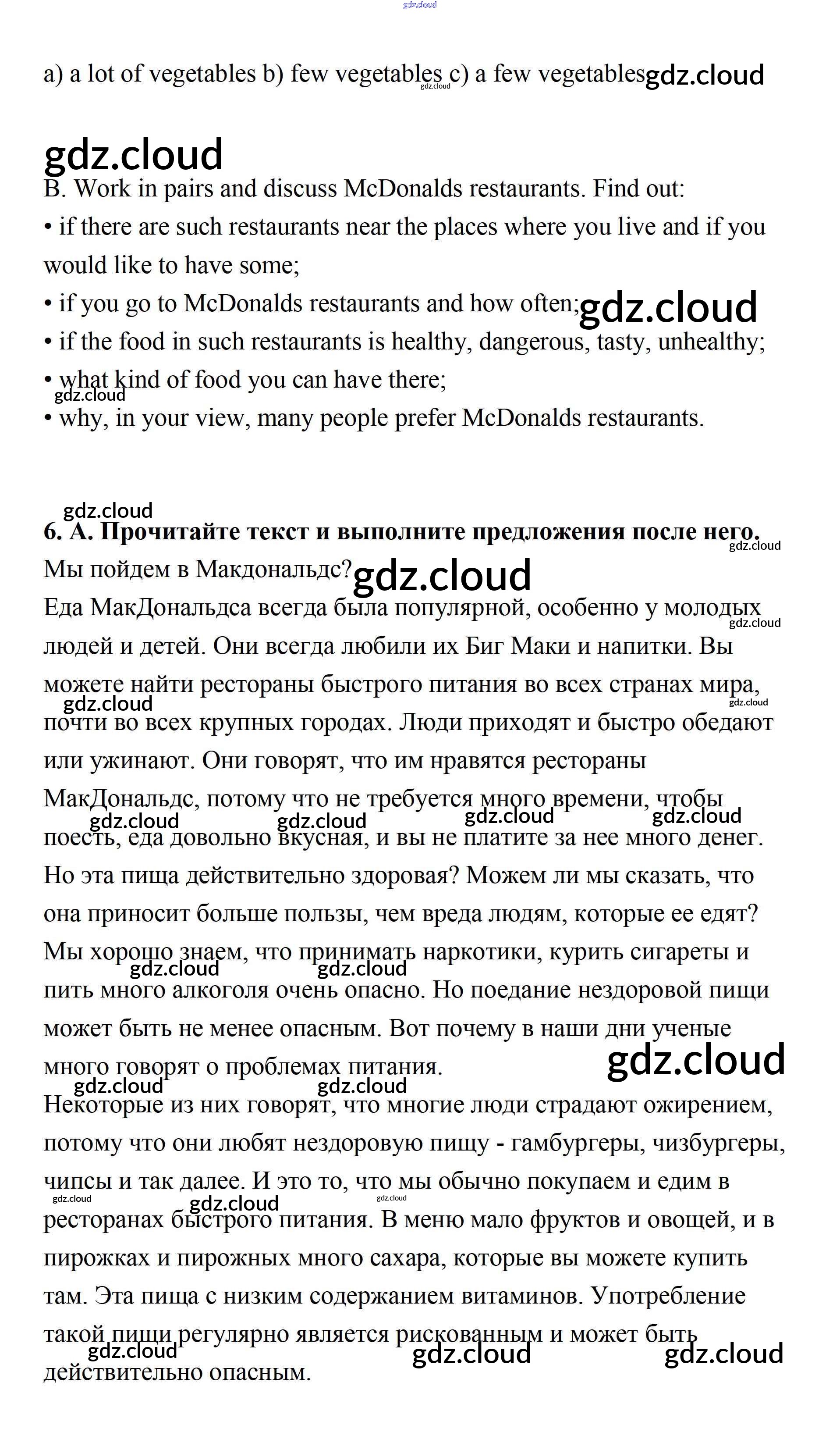 Step 1 Ответы к UNIT 6. LIVING HEALTHY. по Английскому языку 7 класс Учебник Афанасьева Rainbow Часть 1, 2 Дрофа