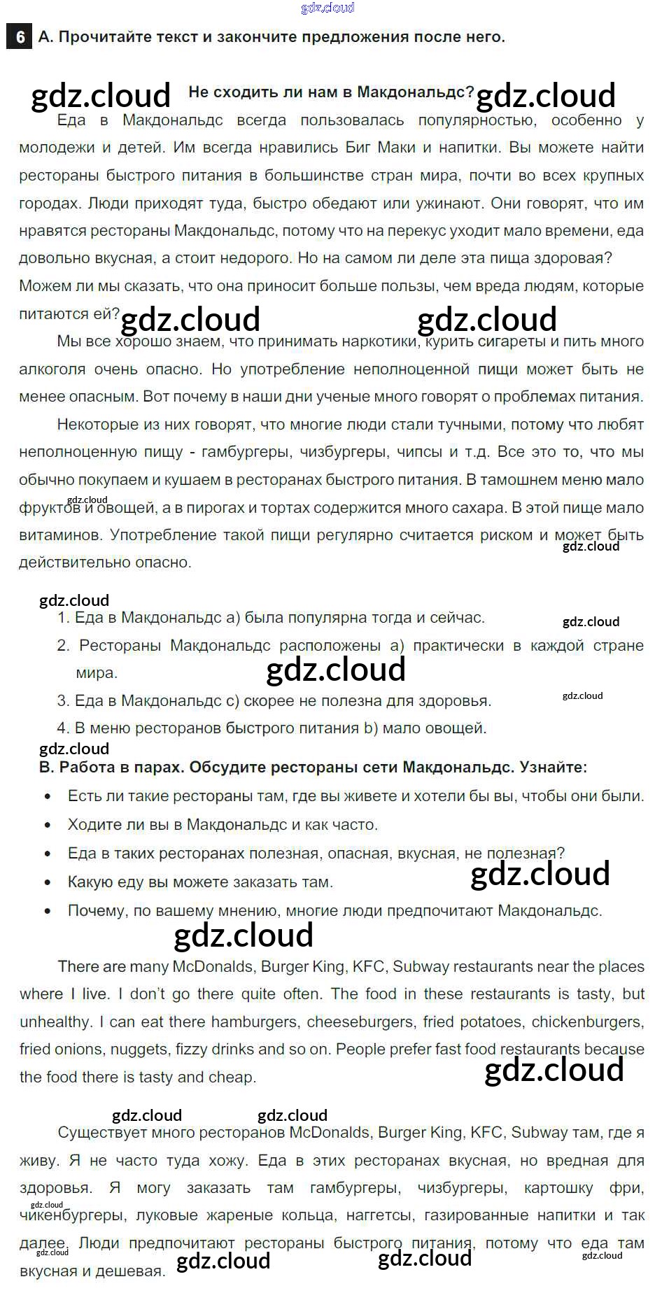 Ответ на задание 6 Учебник Английский язык за 7 (седьмой) класс Афанасьева, Михеева, Баранова Rainbow 2019 Часть 1, 2