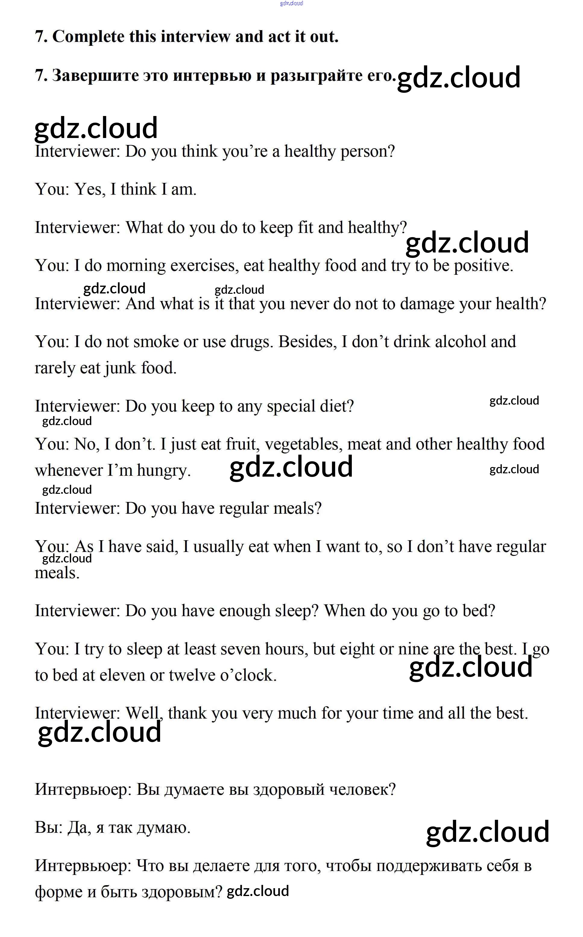 Step 2 Ответы к UNIT 6. LIVING HEALTHY. по Английскому языку 7 класс Учебник Афанасьева Rainbow Часть 1, 2 Дрофа