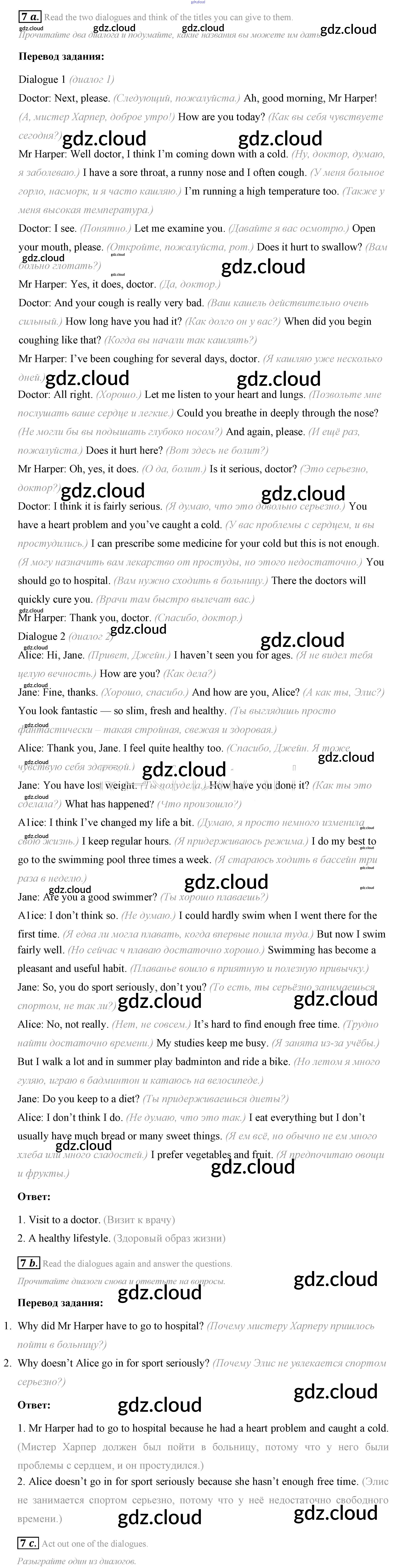 Step 6 Ответы к UNIT 6. LIVING HEALTHY. по Английскому языку 7 класс Учебник Афанасьева Rainbow Часть 1, 2 Дрофа