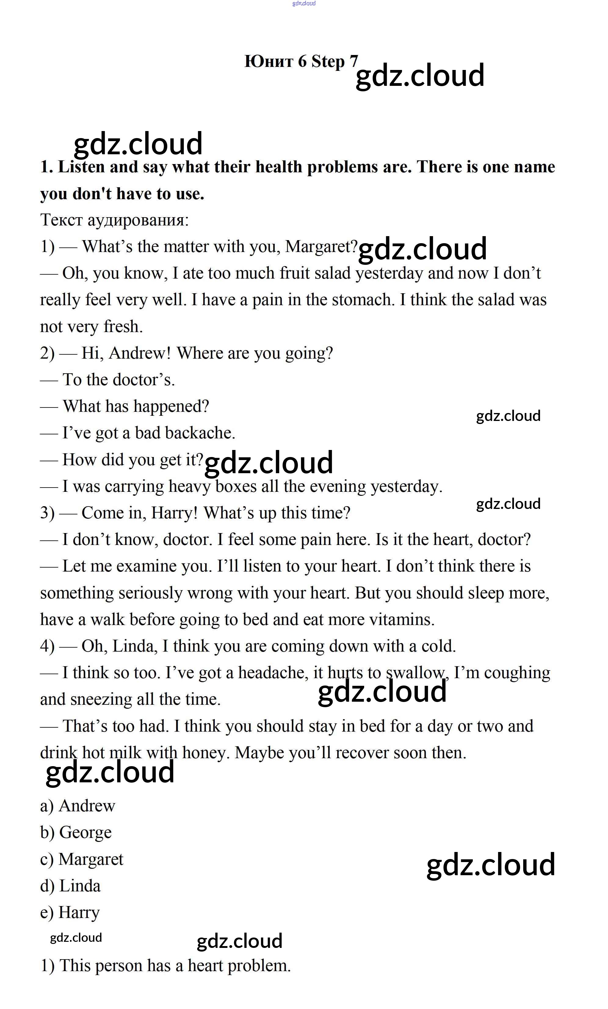 Step 7 Ответы к UNIT 6. LIVING HEALTHY. по Английскому языку 7 класс Учебник Афанасьева Rainbow Часть 1, 2 Дрофа
