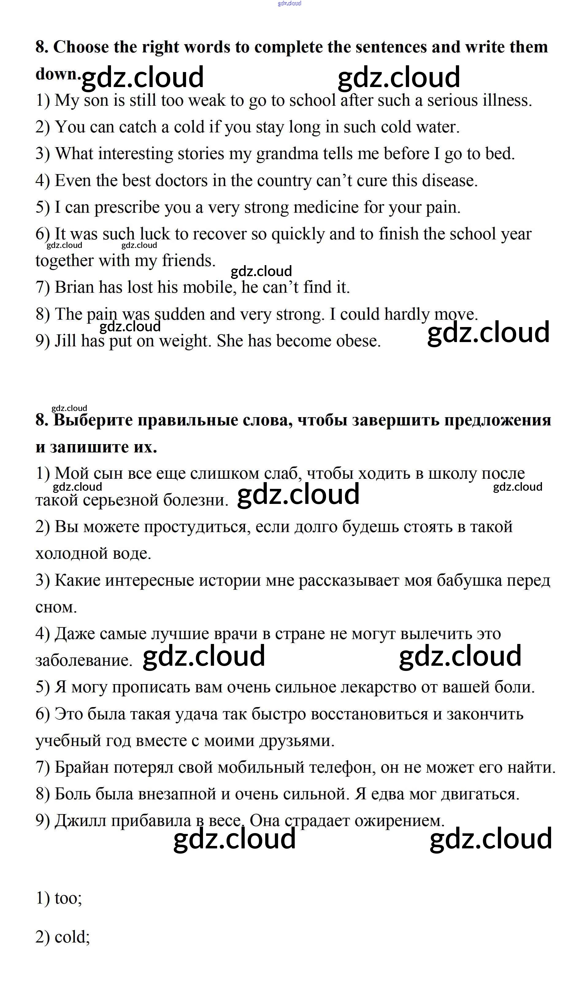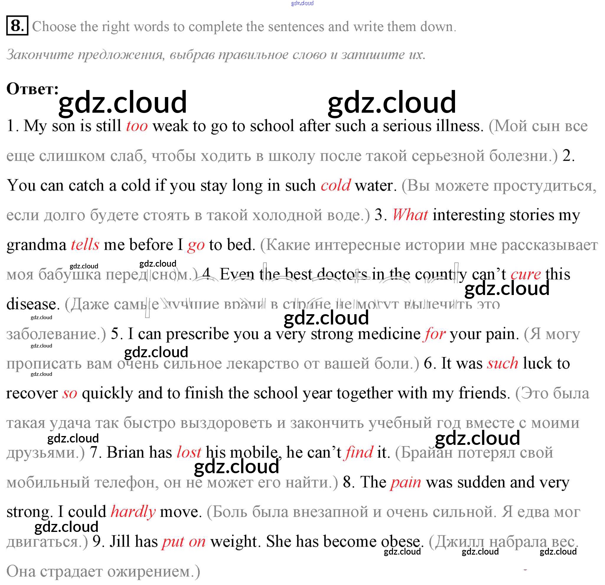 Step 8 Ответы к UNIT 6. LIVING HEALTHY. по Английскому языку 7 класс Учебник Афанасьева Rainbow Часть 1, 2 Дрофа