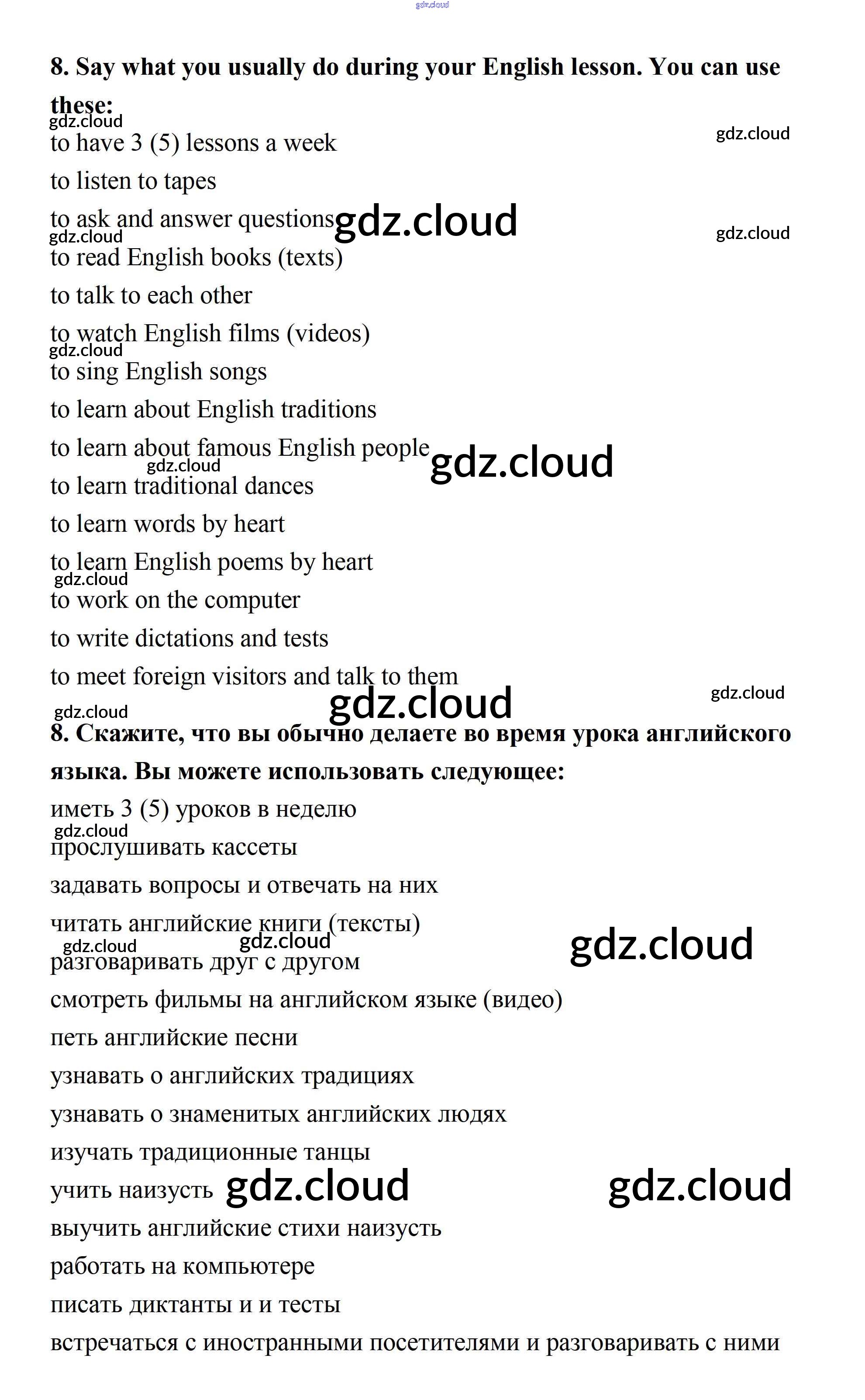 Ответ на задание 8 Рабочая тетрадь Английский язык  за 7 (седьмой) класс Афанасьева, Михеева Новый курс  2017 Часть 1, 2