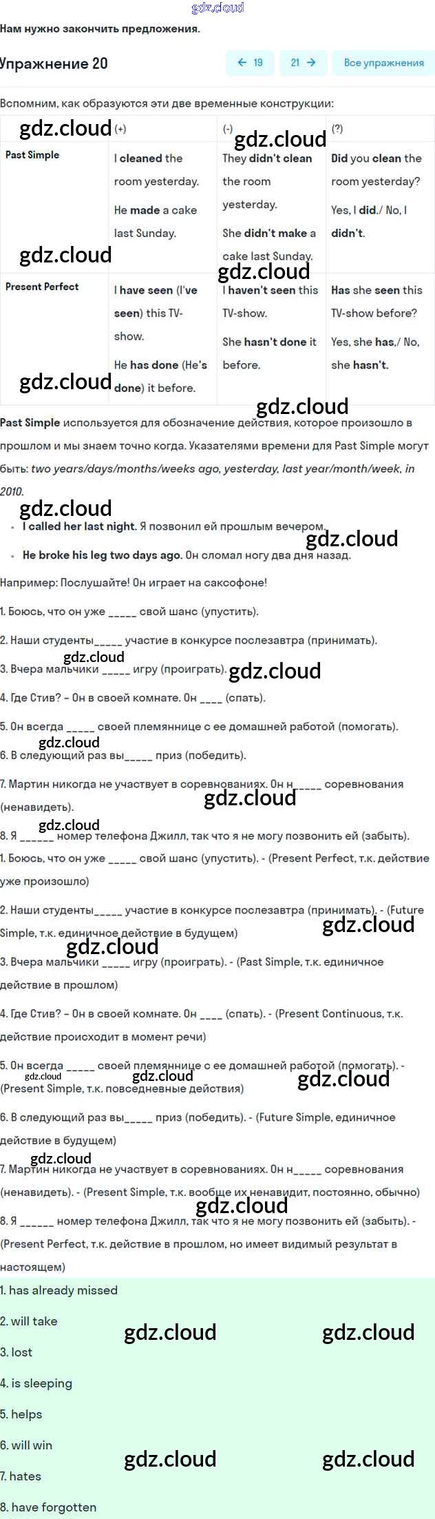 Ответ на задание 20 Учебник Английский язык  за 7 (седьмой) класс Биболетова, Трубанева УМК  2015, 2017