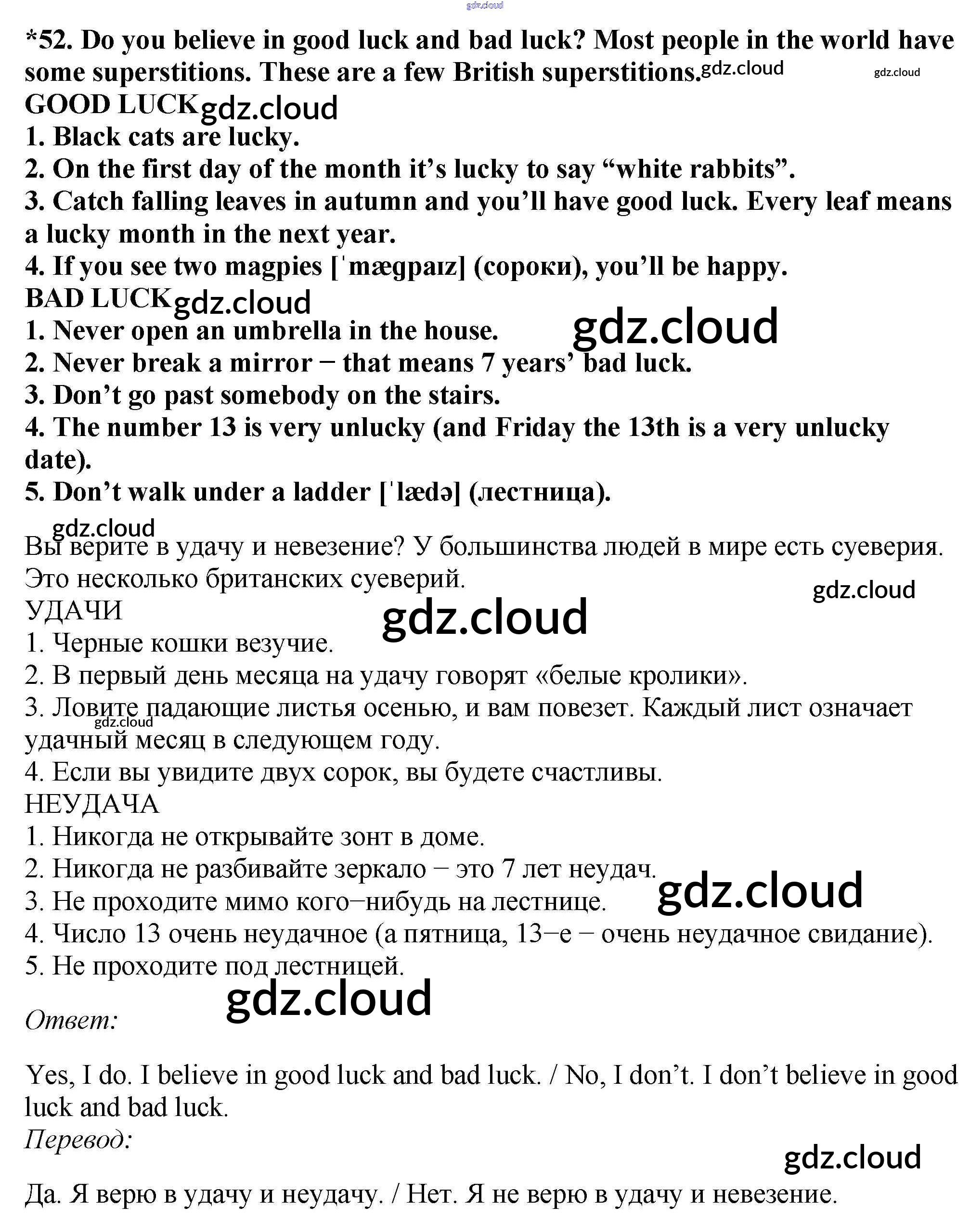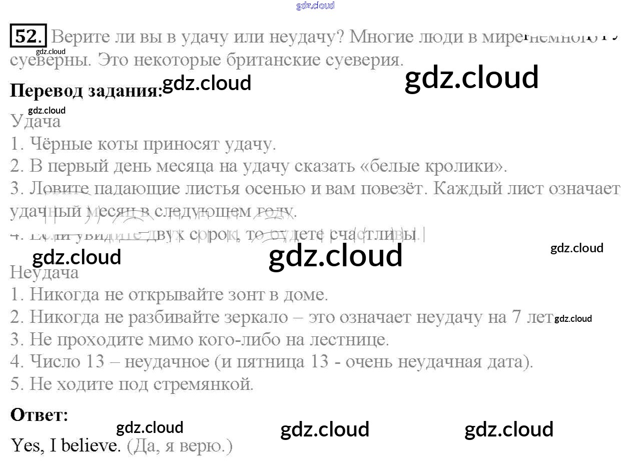 Ответ на задание 52 Учебник Английский язык за 7 (седьмой) класс Биболетова, Трубанева УМК 2015, 2017