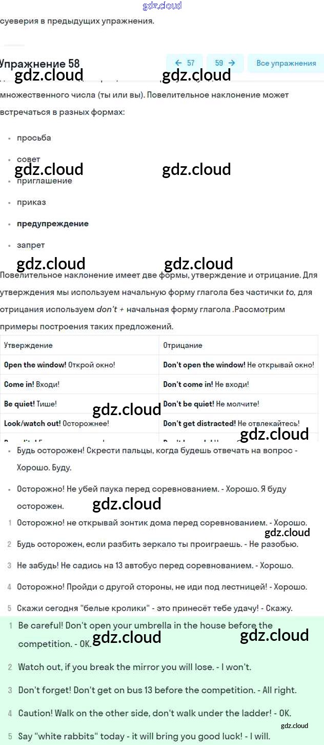 Ответ на задание 58 Учебник Английский язык за 7 (седьмой) класс Биболетова, Трубанева УМК 2015, 2017