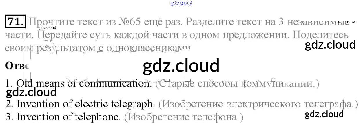Ответ на задание 71 Учебник Английский язык  за 7 (седьмой) класс Биболетова, Трубанева УМК  2015, 2017