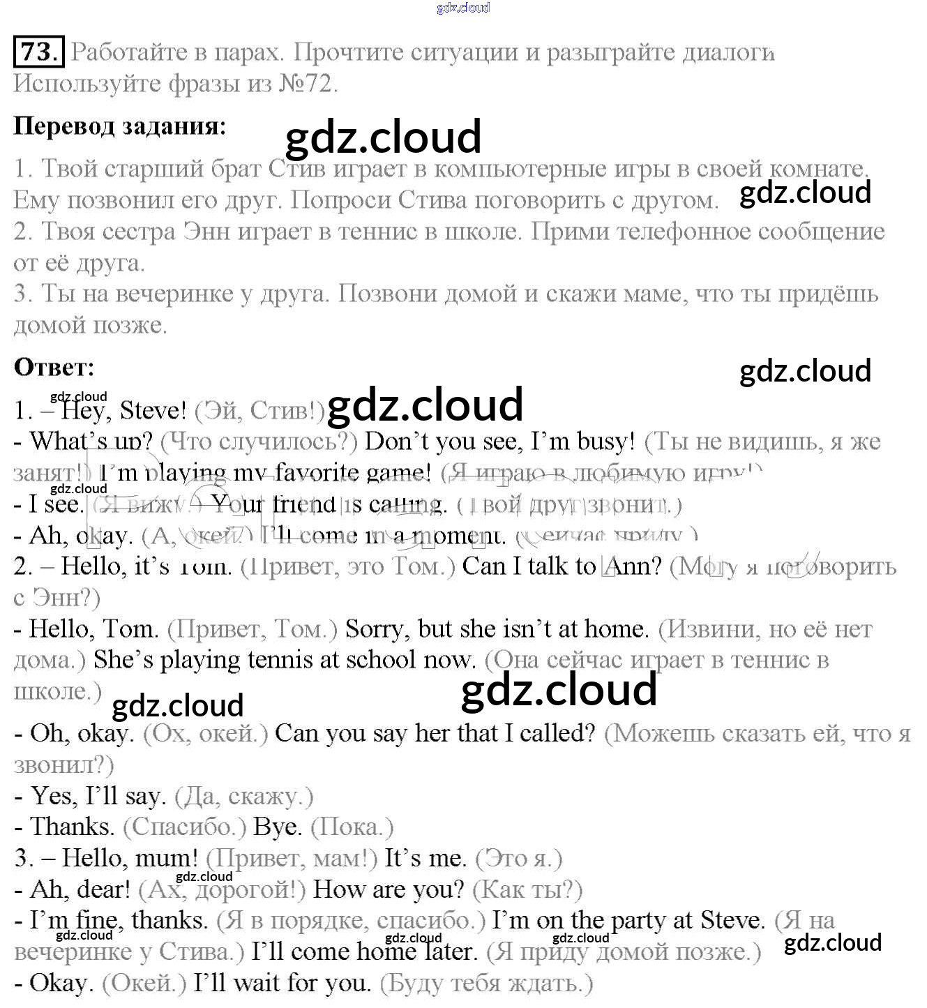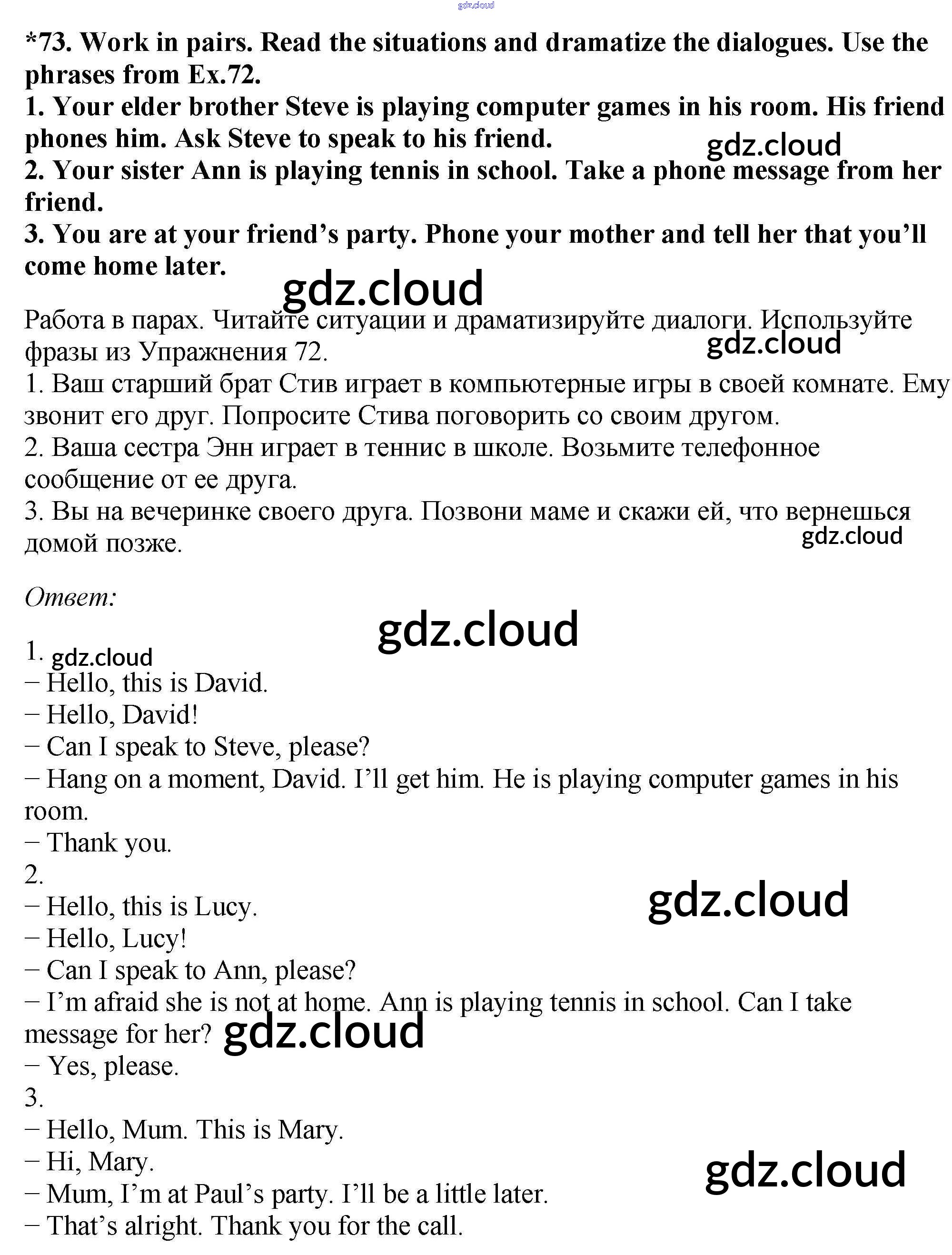 Ответ на задание 73 Учебник Английский язык  за 7 (седьмой) класс Биболетова, Трубанева УМК  2015, 2017