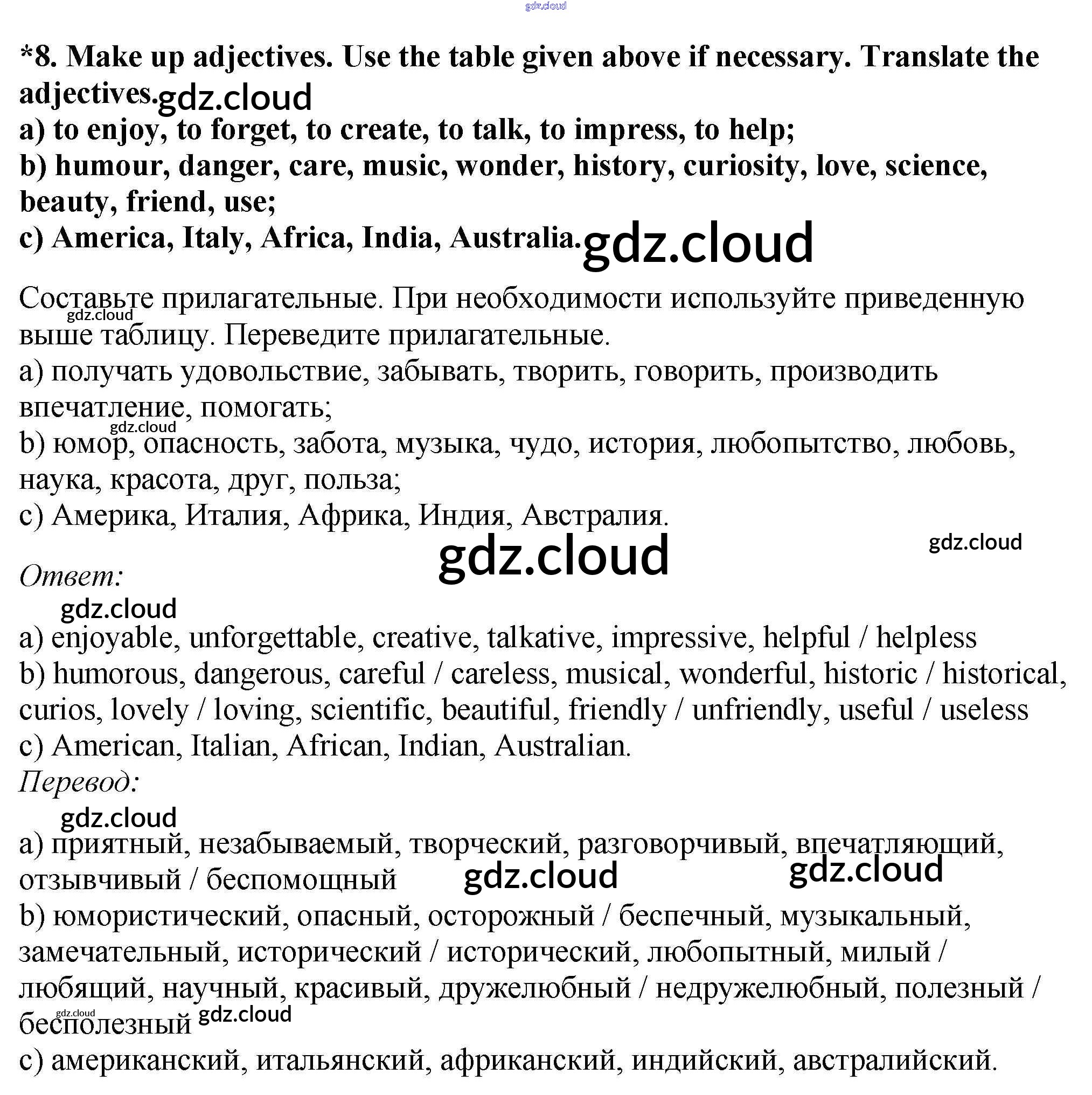 Ответ на задание 8 Учебник Английский язык  за 7 (седьмой) класс Биболетова, Трубанева УМК  2015, 2017