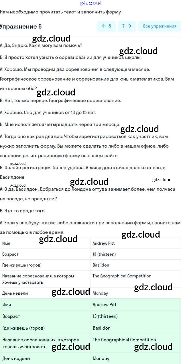 Ответ на задание 6 Учебник Английский язык  за 7 (седьмой) класс Биболетова, Трубанева УМК  2015, 2017