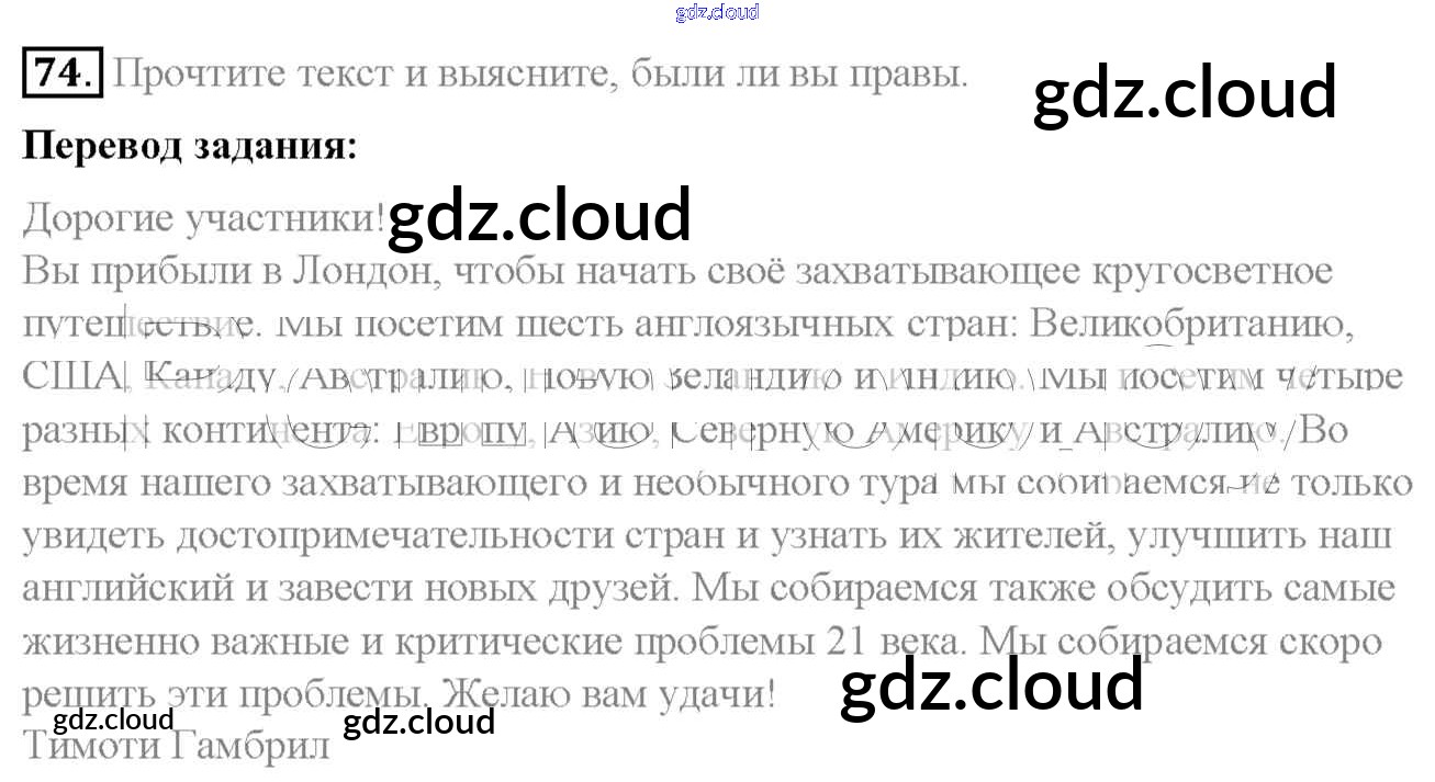 Ответ на задание 74 Учебник Английский язык  за 7 (седьмой) класс Биболетова, Трубанева УМК  2015, 2017