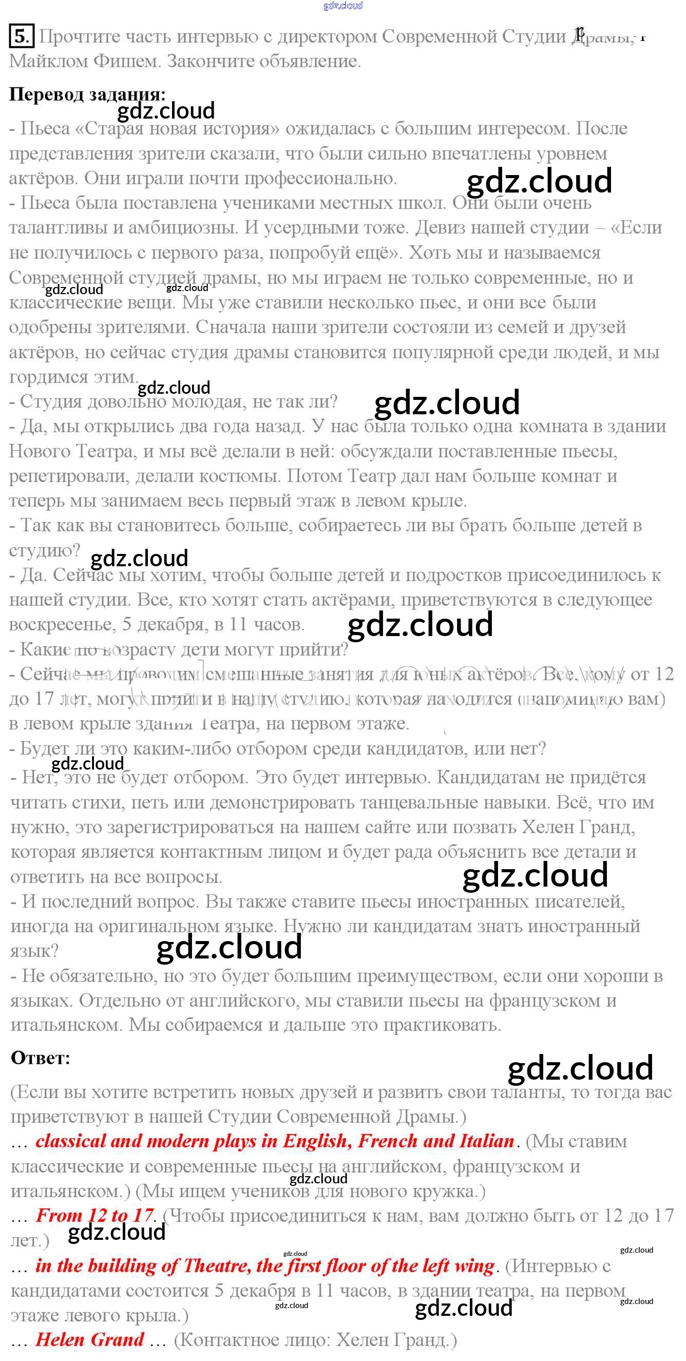 Ответ на задание 5 Учебник Английский язык  за 7 (седьмой) класс Биболетова, Трубанева УМК  2015, 2017