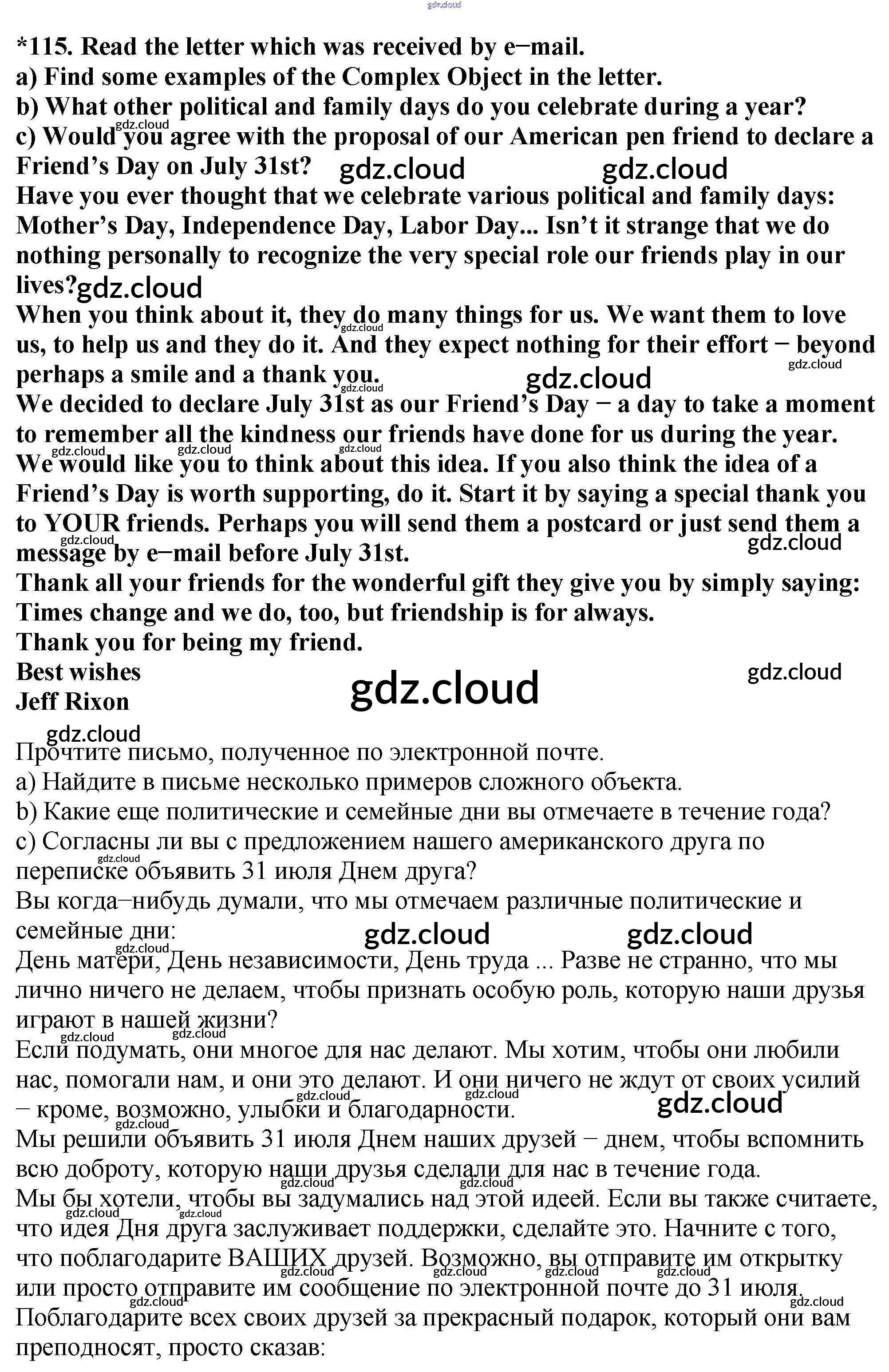 Ответ на задание 115 Учебник Английский язык за 7 (седьмой) класс Биболетова, Трубанева УМК 2015, 2017