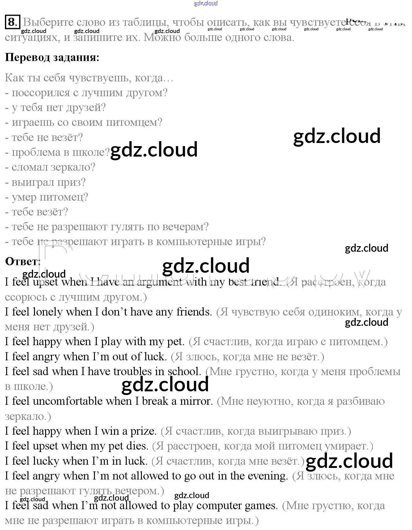 Ответ на задание 8 Учебник Английский язык  за 7 (седьмой) класс Биболетова, Трубанева УМК  2015, 2017