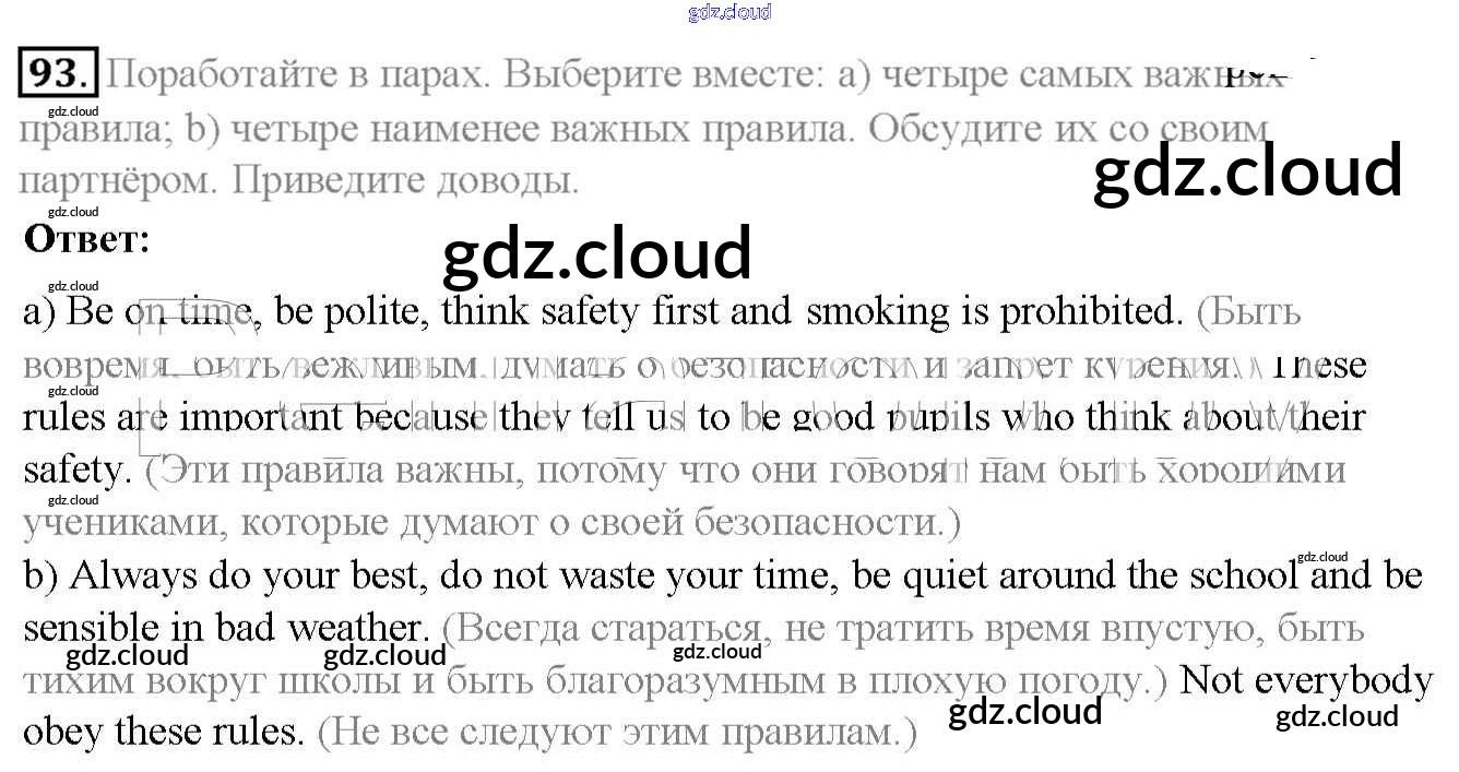 Ответ на задание 93 Учебник Английский язык  за 7 (седьмой) класс Биболетова, Трубанева УМК  2015, 2017