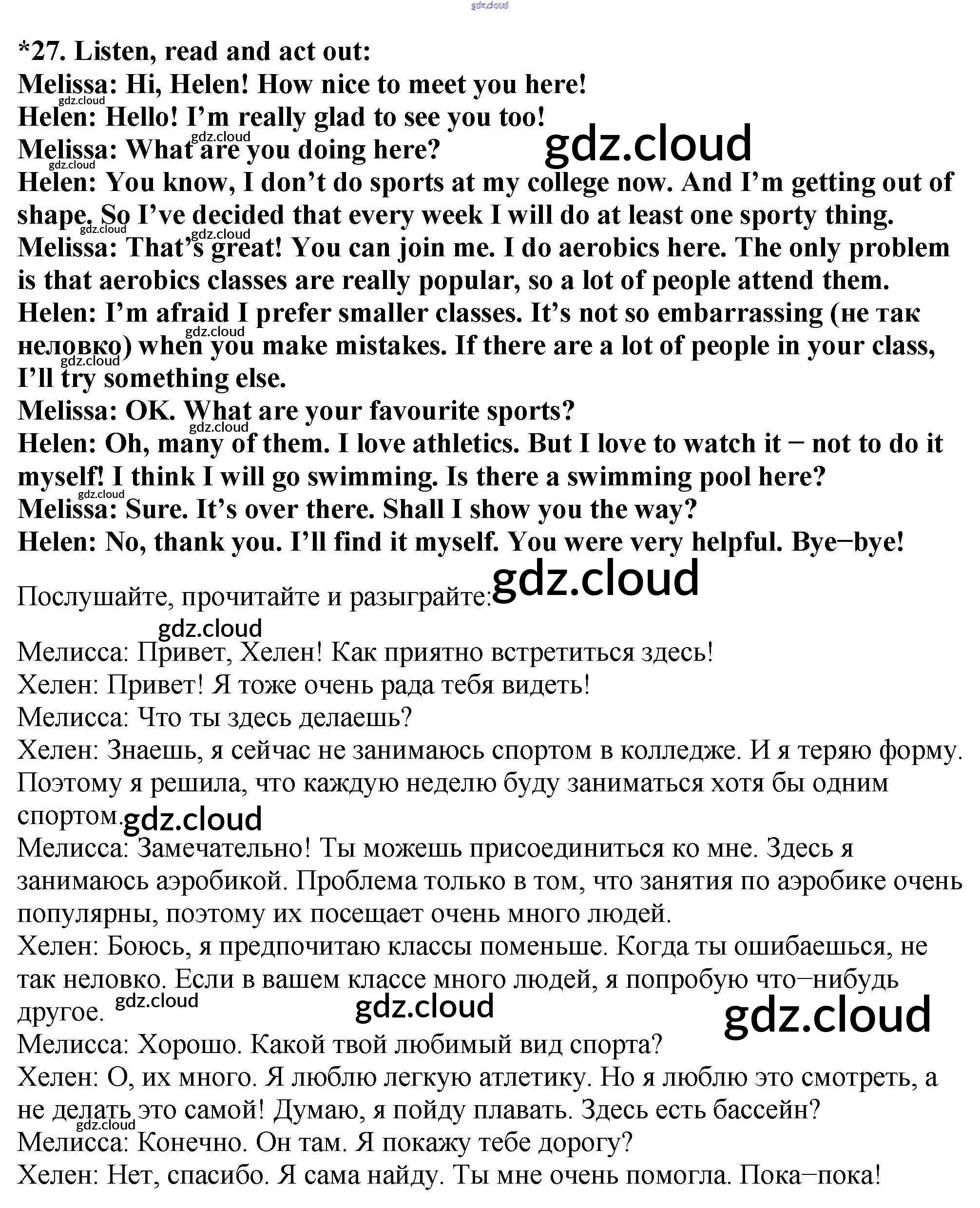 Ответ на задание 27 Учебник Английский язык  за 7 (седьмой) класс Биболетова, Трубанева УМК  2015, 2017