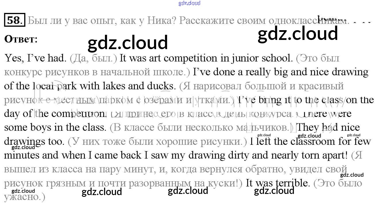 Ответ на задание 58 Учебник Английский язык  за 7 (седьмой) класс Биболетова, Трубанева УМК  2015, 2017