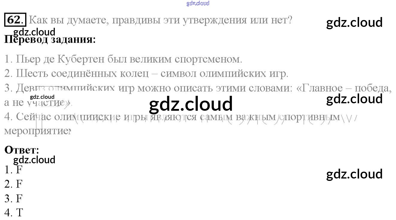 Ответ на задание 62 Учебник Английский язык за 7 (седьмой) класс Биболетова, Трубанева УМК 2015, 2017
