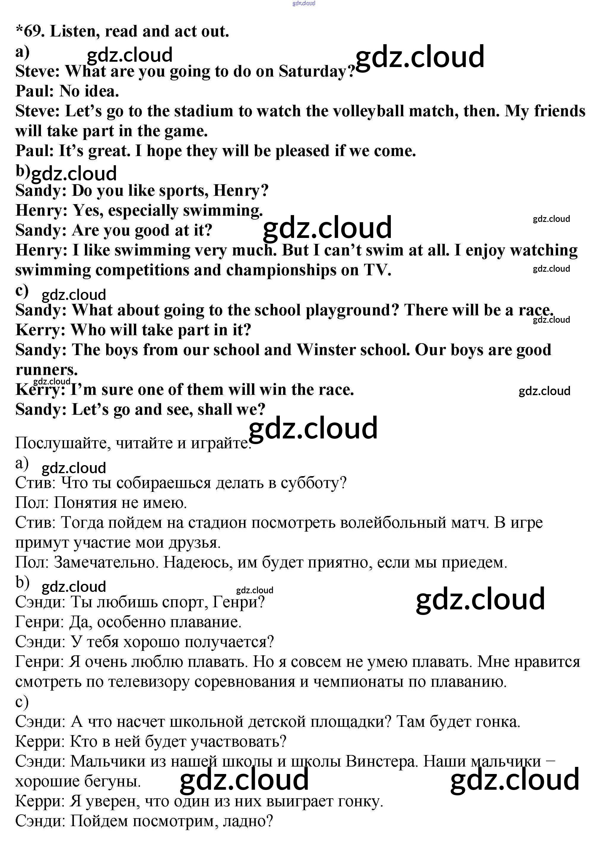 Ответ на задание 69 Учебник Английский язык за 7 (седьмой) класс Биболетова, Трубанева УМК 2015, 2017