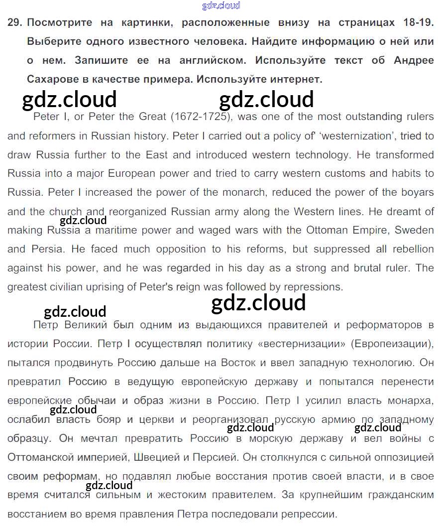 Ответ на задание 29 Учебник Английский язык  за 7 (седьмой) класс Биболетова, Трубанева УМК  2015, 2017