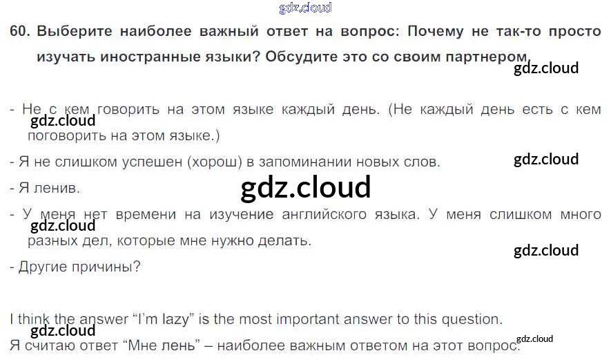Ответ на задание 60 Учебник Английский язык  за 7 (седьмой) класс Биболетова, Трубанева УМК  2015, 2017